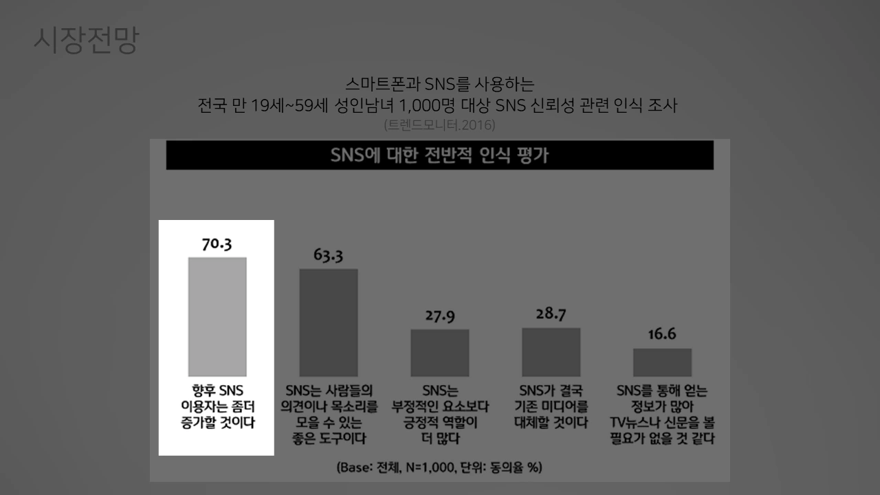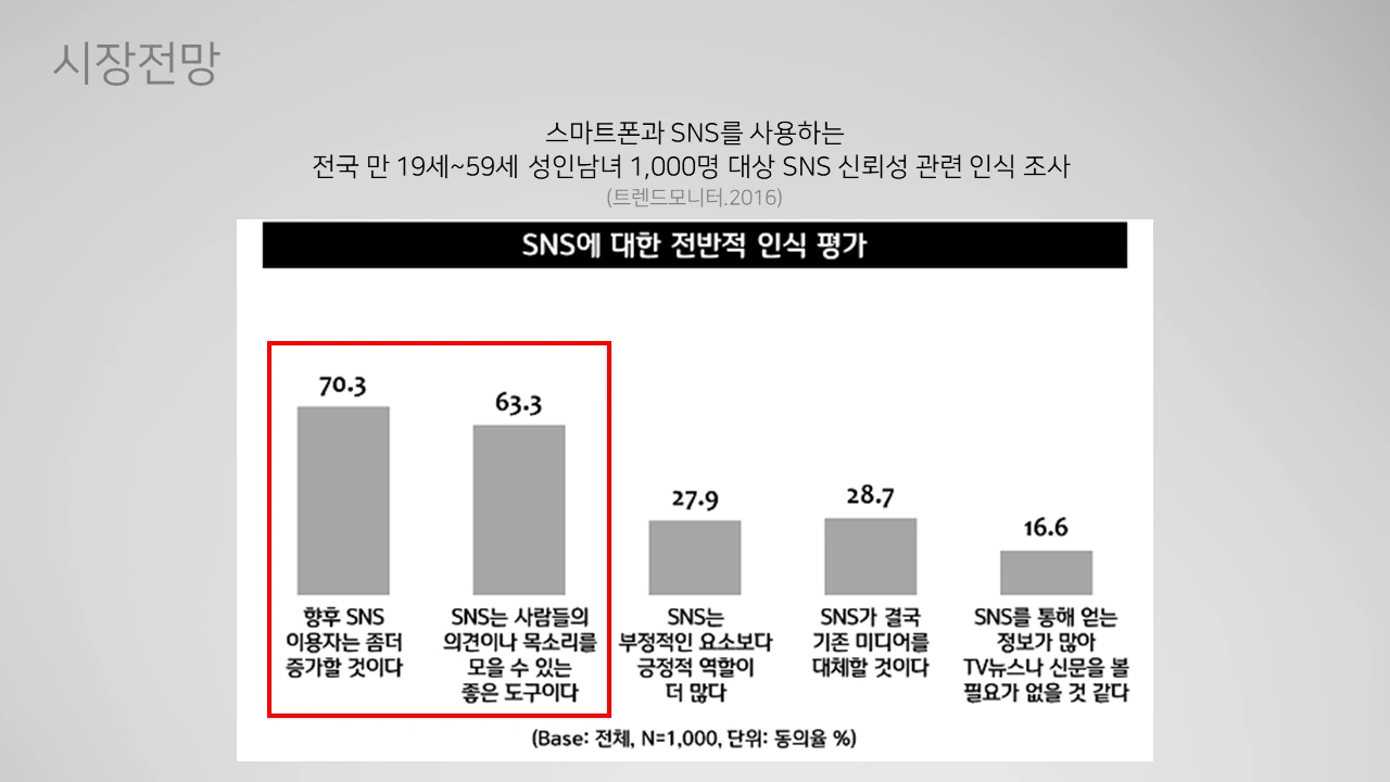 나는 위 이미지에 삽입된 조사 내용 중 특히 두 가지 결과를 강조하길 원했다. 전통적인 기법?으로 그 결과를 표현하는 두 개의 막대그래프에 빨간색 테두리를 쳤다. 하지만 부족했다. 실제 프레젠테이션을 진행하며 두 결과에 대한 하나하나의 의미를 해석하는 멘트를 해야 했다. 그래서 각각의 조사 결과에 대한 나의 해석 멘트와 함께 아래와 같은 이미지들을 만들어 순차적으로 청중에게 보여줬다.