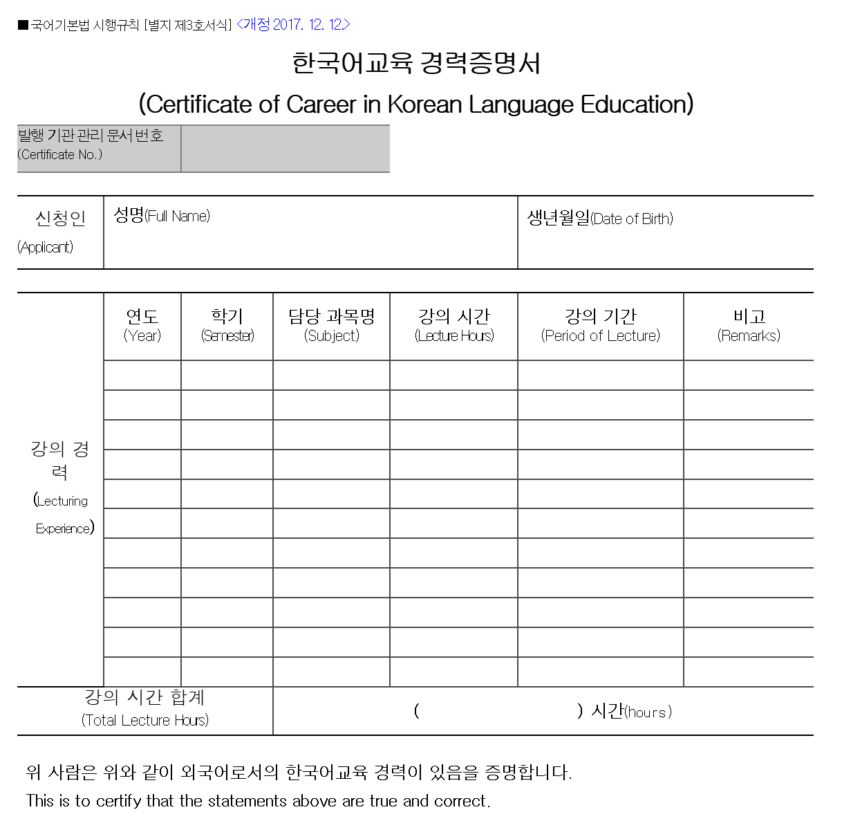 경력 인정되는 기관이더라도 반드시 별도의 양식에 맞게 경력 증명서를 발급받으셔야 합니다. 양식과 증빙 서류 요구가 까다로우니 미리 준비하는 것이 좋습니다.(아래의 양식 참고)