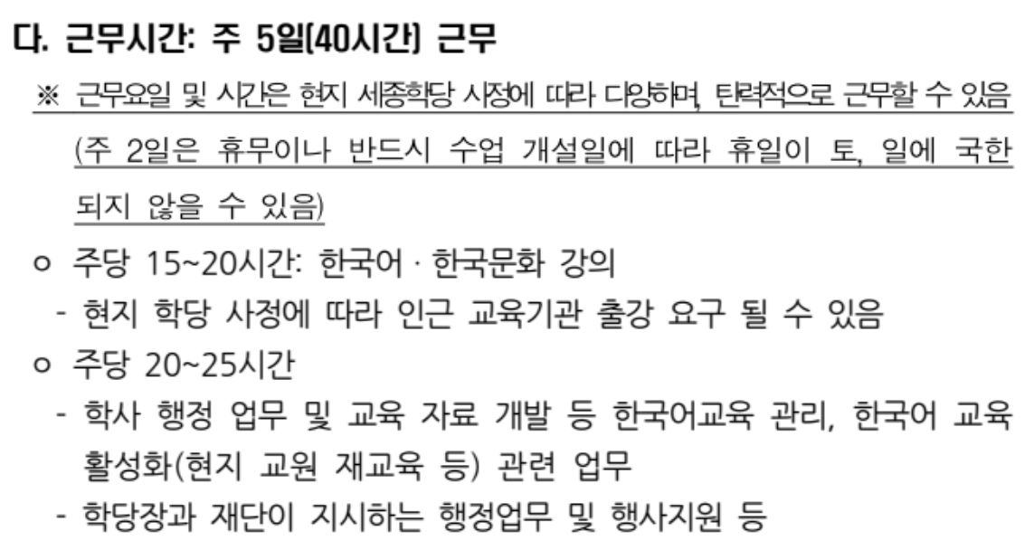 세종학당 해외파견 '근무조건' 파악하기