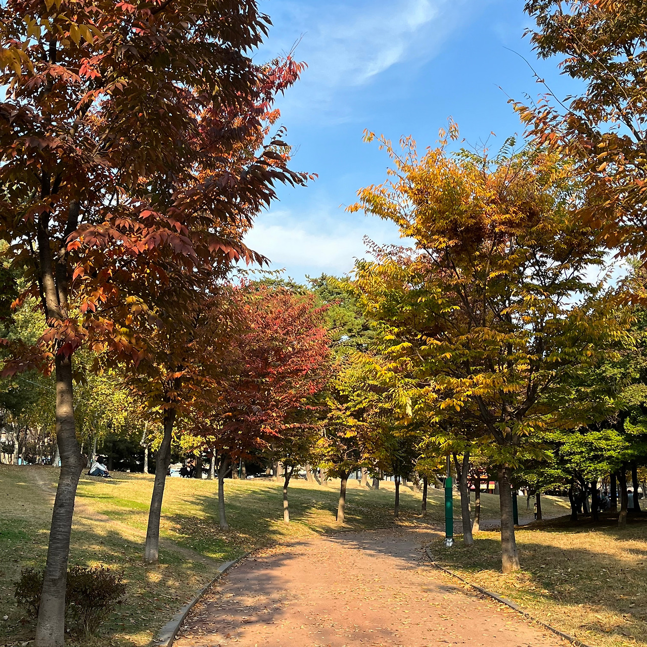 이번 주 내내 날씨가 좋을 거라는 말을 들었다. 주말이 지나면 단풍 절정이 끝난다고도 했다. 가만히 있을 수 없어서 반려견을 데리고 산책을 나섰다. 주말 오후, 녀석과 내가 나선 산책길에는 단풍이 만연한 가을을 느낄 수 있었다. 바람이 차가웠지만 햇살은 따스했다.