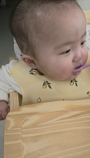 과연 우리 둥이들은 잘 먹었을까? 첫째는 으왝하며 뱉어버렸고, 둘째는 오잉? 하는 표정으로 넙죽 받아먹었다. 이유식을 시작한 지 2주 정도는 나도 아이들도 힘들었지만 지금은 하루에 2끼를 먹이고 있으며 그래도 엄마 아빠의 정성 덕분인지 잘 먹고 있다.