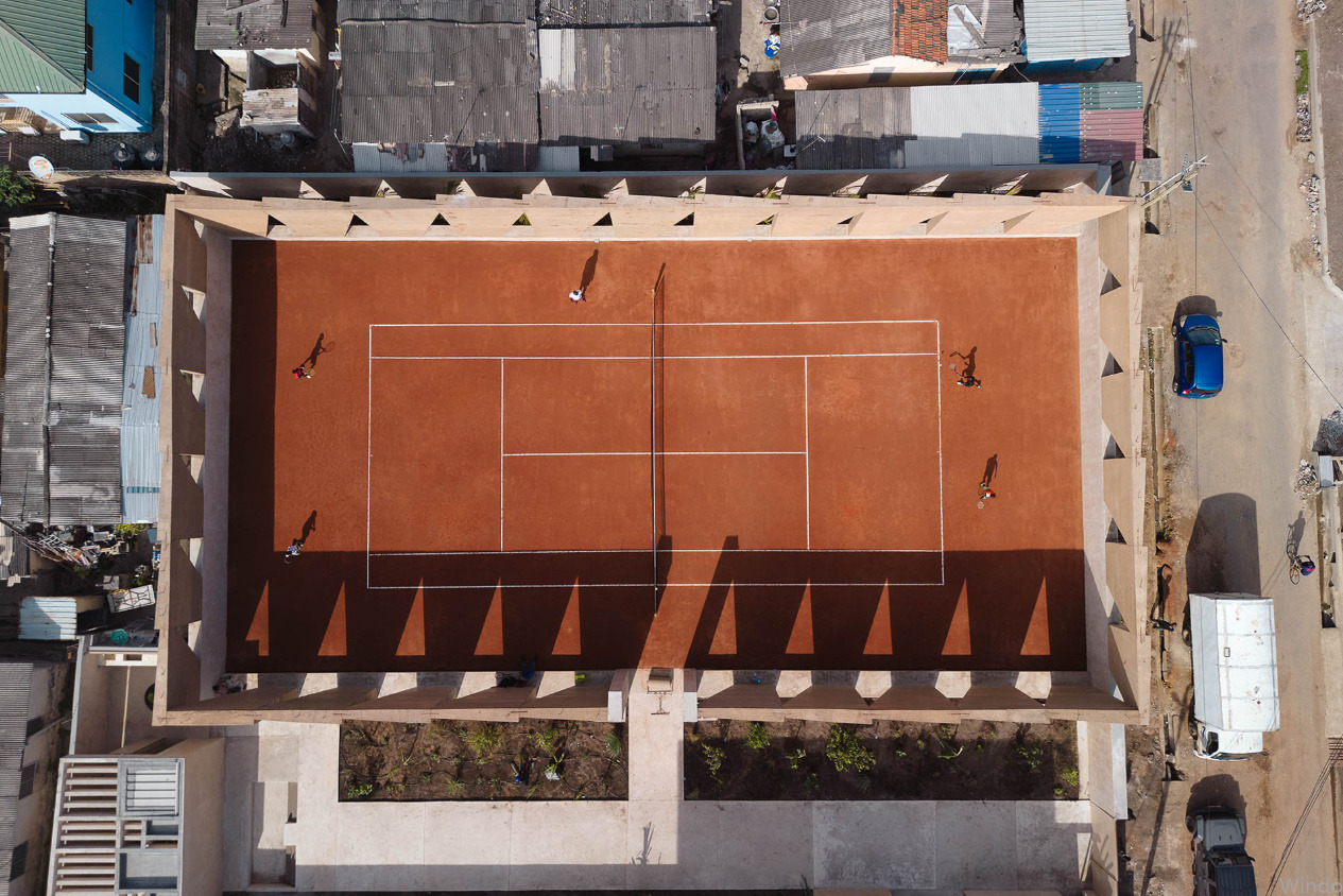 가나 출신의 Amoako Boafo는 볼퍼슨으로 시작해 테니스 선수로 활동했습니다. 작가가 태어나고 자란 가나의 수도 아크라 오수 지역에는 Backyard Community Club이라는 곳이 있는데요. 이 클럽은 청년 세대가 여가를 즐길 수 있도록 하자 그리고 지역의 아동들에게 무료 테니스 수업을 제공하자는 두 가지 목적으로 만들어졌습니다. 이 테니스 코트는 가나 최초의 국제 규격 클레이 코트이기도 합니다. 우양미술관의 Amoako Boafo의 아시아 첫 개인전을 함께 기획한 그리고 건축가이기도 한 Glenn DeRoche는 이 공간을 "청소년을 위한 플랫폼, 멘토십과 공동체를 위한 공간"이라고 정의했습니다. 코트 안팎에는 코코넛, 페퍼민트, 사워솝, 망고, 레몬그라스, 구아바 등의 나무와 식물이 자라고 있는데요. 이곳에서 운동하는 아이들에게 영양을 제공하는 역할도 한다고 합니다(The Art Newspaper, 2025). 이 클럽의 결실에는 물론 Amoako Boafo가 있습니다.
