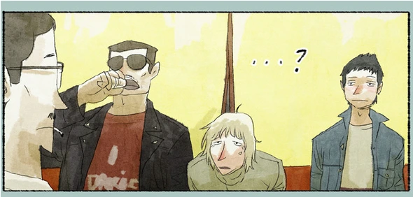 술에 잔뜩 취한 청년들에게 콧수염 아저씨가 나직이 이야기합니다.