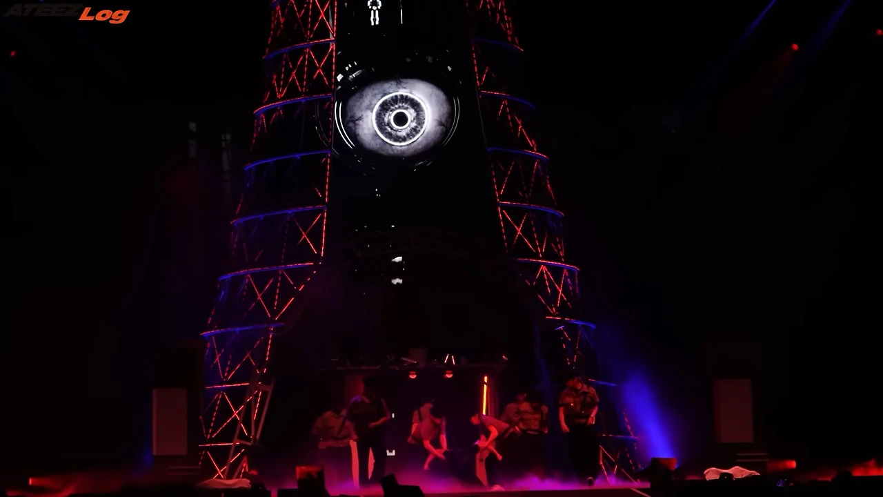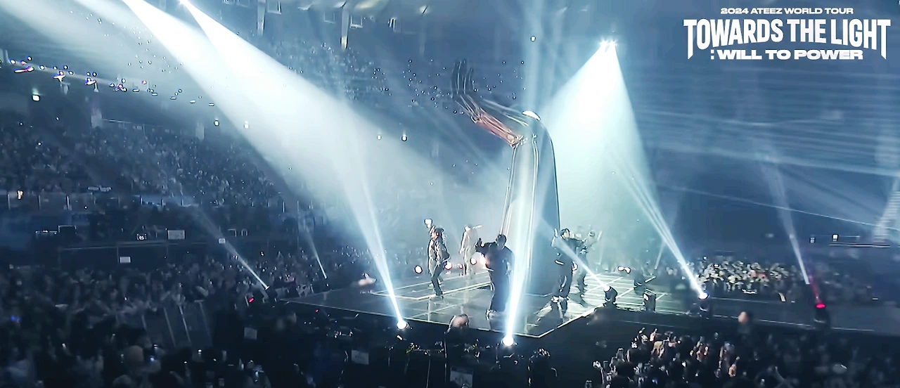 높이 16미터에 달하는 구조물을 무대 중앙에 세운 이유는 최근 공연 트렌드와도 관련이 있습니다. 2017년 U2의 The Joshua Tree Tour가 대형 LED에 구현한 8K 영상이 압도적인 인상을 남긴 후 많은 공연이 대형 LED를 중심으로 연출되기 시작했습니다. 그러자 점차 무대들이 시각적으로 비슷해진다는 인상을 지울 수 없었습니다. 게다가 대형 LED에 나타나는 VJ의 이미지가 실제보다 비현실적으로 크거나 모션이 과도할 경우 아티스트의 존재감이 약해지는 경우도 많이 있었고요. 특히 에이티즈처럼 퍼포먼스 중심의 팀에게는 이 점이 더욱 중요하게 다가왔습니다.