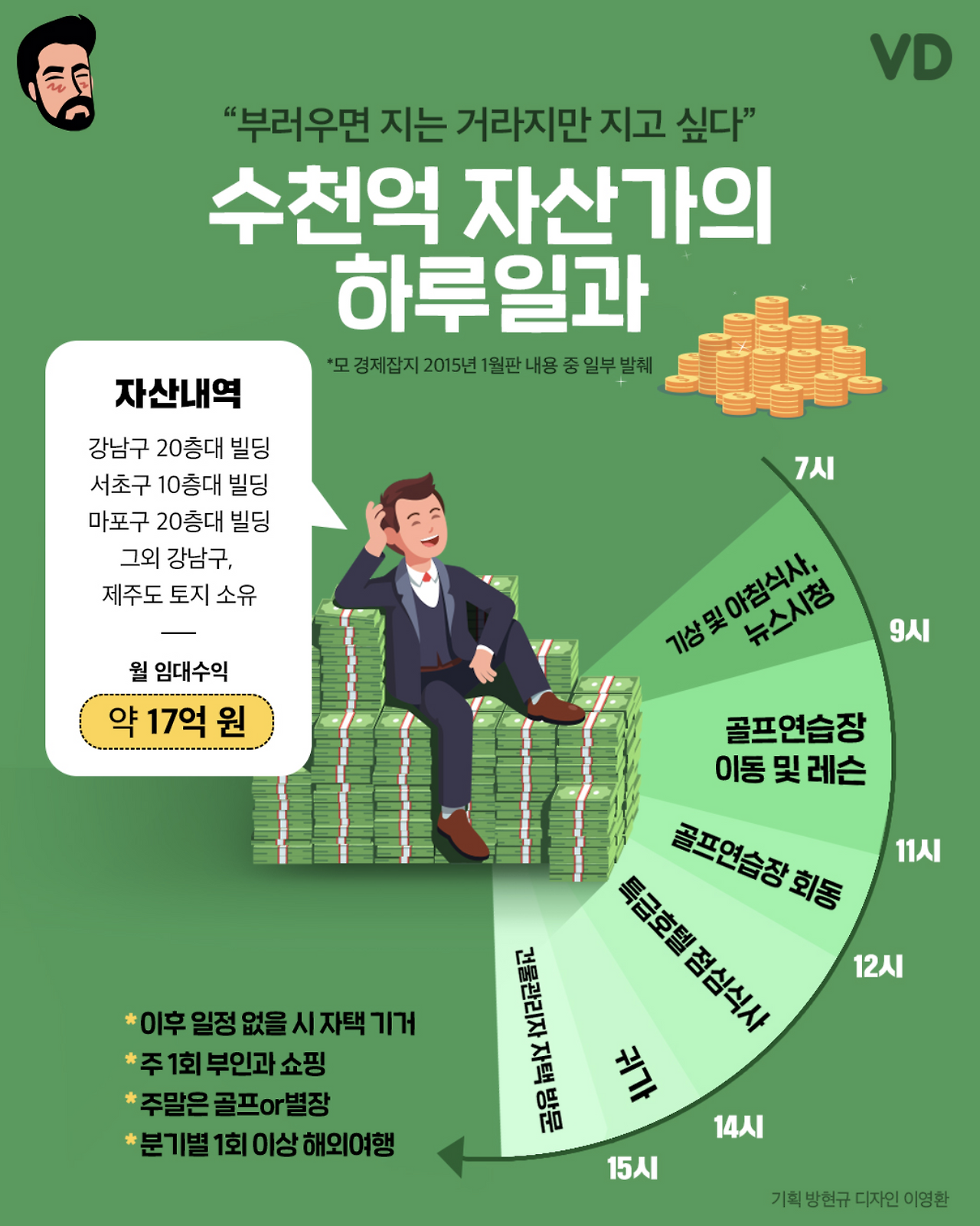 24시간 중 수면시간 7시간, 신변 정리 1시간, 식사 시간 2시간, 일하는 시간 최소 8시간, 이동시간 1시간 등을 제외하고 나면 자유롭게 활용할 수 있는 시간은 5시간 남짓이다.