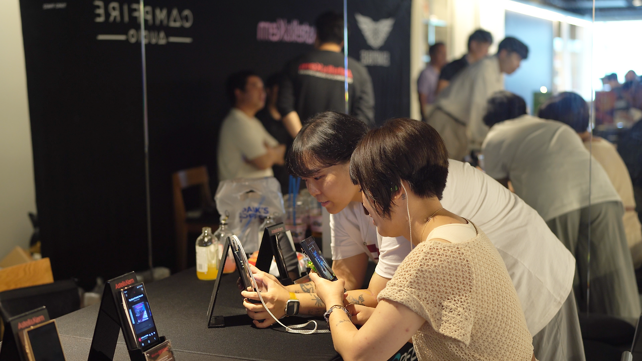 행사 일정도 대다수 오디오 브랜드가 신제품을 발표하는 홍콩 오디오 쇼 바로 다음 주로 잡아서 국내에선 가장 먼저 들어볼 수 있도록 했고, 인원도 우리 유튜브를 통한 정말 마니아들 딱 100명 만 사전 모집으로 초대장을 발송해드렸다. 공간은 프리미엄 행사 취지에 어울리는 쾌적하면서도 독특한 공간을 골랐고, 오디오 마니아분들이 즐겁게 먹고 마시고 편안하게 즐기며 놀다 갈 수 있도록 음료와 음식도 제공해드렸다. (무엇보다 맛있는 거 먹으면서 소파에 편안하게 기대서 음감 할 수 있다는 게 어느 정도 주효했다)