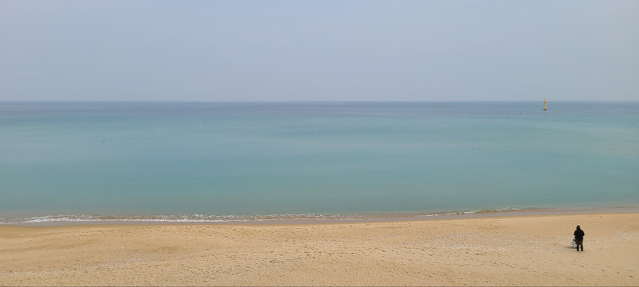 첫날의 목표는 해파랑길 33코스 전체와 34코스의 일부였다. 숙소가 34코스 초반부에 위치해 있으니 어떻게든 그까진 가야 했다. 33코스는 추암역에서 묵호역 입구로 이어지는 13.6km의 길이다. 밥을 먹은 식당이 추암역보다 조금 아래에 있는 쏠비치 삼척 근처였는데, 우리는 그냥 그곳부터 걷기 시작했다.