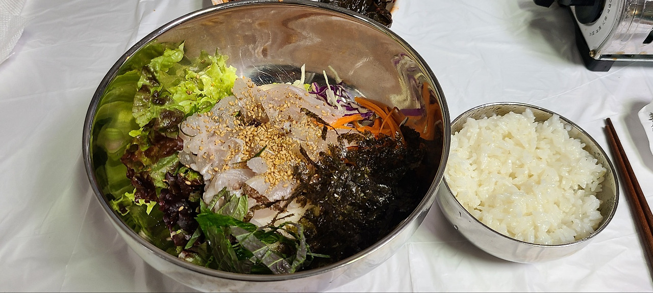 묵호를 지나 어달해수욕장 근처로 가자 식당들이 몇 개 보였다. 시간이 촉박한 와중에도 폭풍 검색을 해 조금이나마 평점이 높은 식당을 찾았다. 매운탕과 물회를 시켜 싹싹 긁어먹고 대진항까지 부지런히 걸었다.