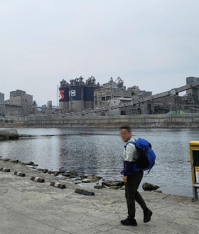 추암을 지나 계속 걷고 걸었다. 아침에 내렸던 동해역도 다시 지나갔고, 계속 바다를 끼고 걷는 줄 알았는데 걷다 보니 도심 안으로 들어가기도 했다. 바닷가 쪽에 있는 군부대나 초소, 기찻길 때문인 듯했다. 그래서 걷다 보니 시멘트 공장도 나오고... 여담인데 우리가 이 공장 옆을 지나간 게 오후 1시가 좀 넘은 시각이었다. 보통 회사의 점심시간이 끝날 무렵이었는데 공장 쪽에서 어린 여자아이의 목소리로 노래가 나오고 있었다. 얼마나 크게 울려 퍼지는지. 시간이 좀 지나 정확한 워딩은 기억나지 않지만 대충 '아빠 조심하세요 아빠 힘내세요' 이런 류의 내용이었다. 아무래도 일 자체가 위험성을 내포하는 직종이다 보니 저런 노래가 만들어지지 않았을까 싶었다. 기술 없고 능력 없는 사무직 두 명은 고개를 끄덕이며 걸음을 재촉했다.