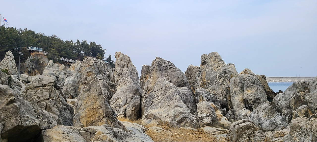 그때가 오후 5시를 넘긴 시간이었다. 한겨울보다는 해가 길어지긴 했으나 조금은 속도를 내야 했다. 해가 떨어진 후에 걷는 건 여러 측면에서 위험하다. 해파랑길 자체가 온전하게 인도로만 걷는 길이 아니기 때문에 차와 함께 걸어가야 하는 구간이 있다. 대도시처럼 교차로마다 신호등이 있는 것도 아니고, 차도 속력을 내기 마련. 손전등이나 후미등이 준비되어 있지 않은 상황에서 야간 보행은 피해야 했다. 거기다 첫날 숙소가 있는 동네에 저녁 식사할 곳이 마땅치 않았다. 먹고 숙소에 들어가야 했다.