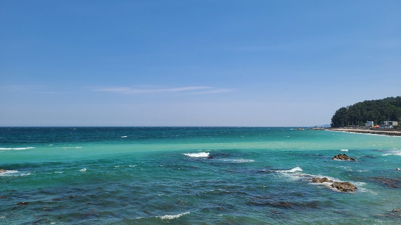 신나게 점심을 먹고 터미널에 딸린 편의점에서 간식을 몇 개 사서 해파랑길 25코스 역주행을 시작했다. 해파랑길은 기본적으로 부산에서 강원도 고성까지 남에서 북으로 올라가는 길이라, 우리의 이번 여정처럼 울진에서 영덕 방향으로 내려간다면 사실은 역주행에 해당한다. 하지만 이렇게도 저렇게도 걷는 이가 많으니 어떤 방향으로 가든 표시가 잘 되어 있어 그게 문제가 되지는 않는다. 6월 첫날의 햇살은 따사로웠고 바람도 살랑살랑 불어왔다.