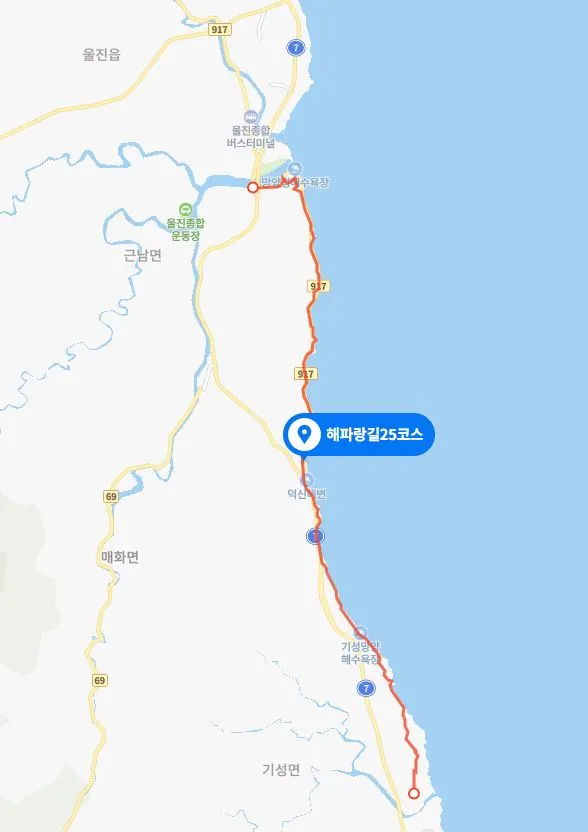 휴게소를 나오니 해가 서쪽으로 거의 넘어가 기운이 빠져 있었다. 바람이 부니 서늘했다. 딱 걷기 좋은 날씨. 오후 내내 쓰고 있던 선글라스도 집어넣었다. 해가 다 넘어가기 전에 숙소에 도착하는 게 목표. 동해안 자전거길을 달리는 자전거 라이더 분들도 꽤 보였다. 저분들은 오늘 어디까지 가시는 걸까. 저녁은 어디서 해결하는 걸까. 이런저런 생각을 하며 1시간 여를 더 걸어 숙소에 도착했다. 기성망양해수욕장 근처의 한 펜션이었다. 해수욕장 근처인데 이렇게 편의시설이 없다니 라는 생각을 다시 한번 하며 노곤했던 하루를 마무리했다. 25코스를 다 걷진 못했다. 다음날 24코스와 연계해서 다 걸을 예정!