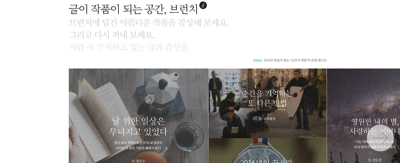그 전까지만 해도 내가 브런치에 써내려 간 글들은 간간히 십 자리의 조회수를 웃도는 정도였는데, 이게 이상하게 조회수가 높아지고 라이킷되는 수가 높아져서 계속해서 추이를 살펴봤었더랬다. 그런데, 놀랍게도 다음 메인 화면과 브런치의 메인 페이지에 떡하니 올라가 있어서 놀란 마음을 부여잡고 캡쳐를 했다.