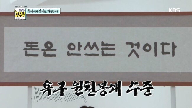 영수증의 성공이 의미있는 이유의 또 한가지 이유는 소비와 저축, 그 이전에 중시해야 할 것을 정확히 짚어준다는 점이다. 통장요정 김생민은 '충동적금', '스트레칭은 노머니' 등의 말을 하면서 저축과 절약을 이야기하지만, 돈보다도 중요한 것은 '가족사랑', '노동', '책'이 중요하다는 것을 늘 언급하며, 이러한 곳에 들어가는 소비는 아끼지 않고 마음껏 써도 된다! 라고 언급한다. 이 부분에서 나는 큰 감동을 얻었다. 직장인 초년생으로써 소비와 저축 사이의 밸런스, 그리고 가족과 문화생활, 인간관계 등 여러가지 부분에서 밸런스를 맞추는 것이 꽤 힘든 일이라는 걸 몇 차례 겪은 바 있다. 그러나 이러한 부분에서 김생민은 명쾌한 해답을 준다. '습관 이즈 베리 임폴턴트', '효도 이즈 그뤠잇', '자기 개발은 중요하지만 외면 뿐만이 아니라 내면의 개발 역시 중요하다' 라는 그의 말은 단순한 절약보다 더 큰 의미를 전달해준다. 이러한 그의 삶의 태도에 반해 팬카페에 가입하는 이들이 실시간으로 급증하고 있는데, 어쩌면 당연한 일이 아닐까(덧붙여 말하자면, 나 역시 가입했다.)