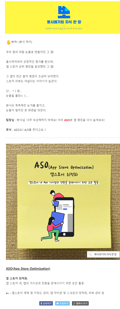 뽀시래기의 지식 한 장이라는 귀여운 슬로건과 함께 발행되는 뉴스레터. 많이 들어는 봤는데 정확히는 모르겠는 실무 용어를 아주 가볍게 설명해준다. 용어에 아직 익숙하지 않은 신입들에게 유용할 것 같다. 가끔 들어가 있는 귀여운 짤방은 덤.