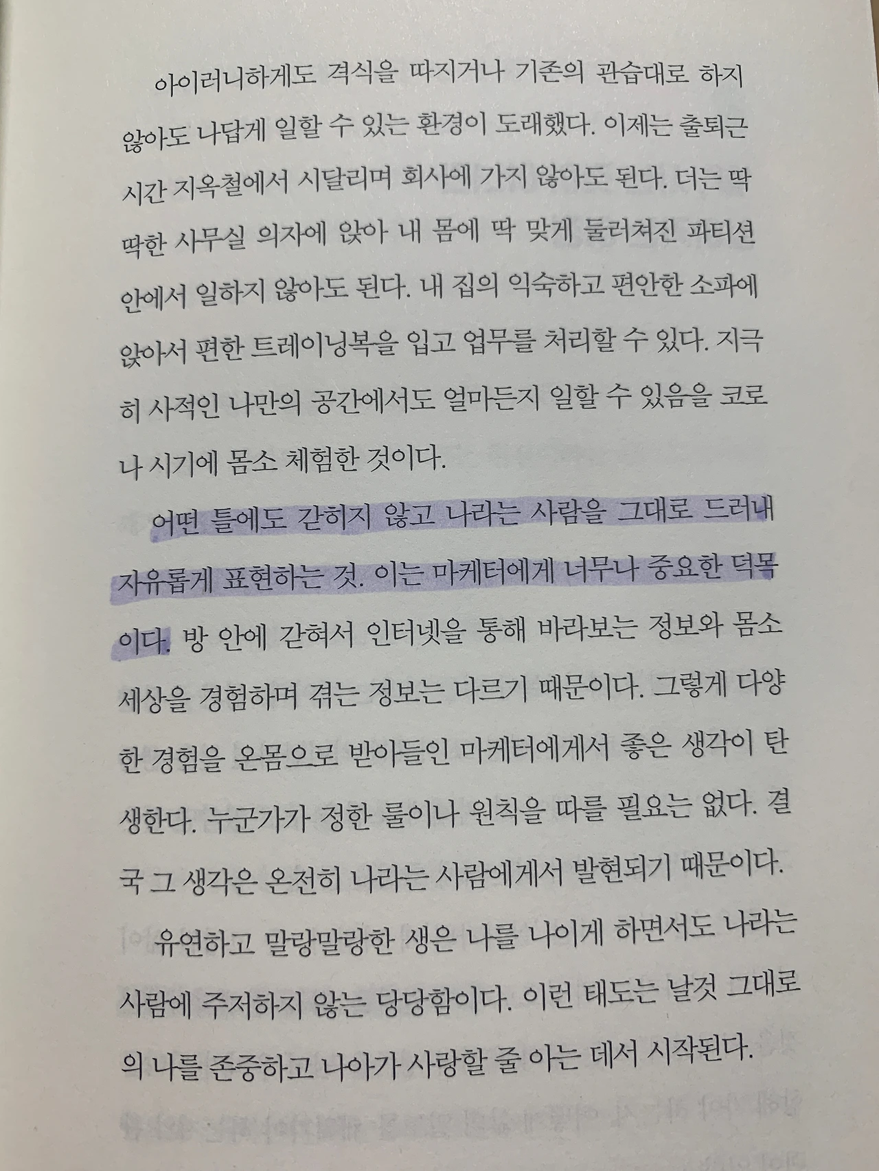 면밀하게 소비자들의 내면을 살피고 꾸준하게 사람들이 어떤 트렌드에 반응하는지를 파악해야 하기 때문이다. 거기에 마케터로서 제품이나 서비스, 또는 회사를 대변해 사람들이 좋아해 줄만한 모습으로 세상에 나서야 하는, 그야말로 실체를 드러내진 않지만 세상 앞에 늘 보여져야 하는 직업이다.