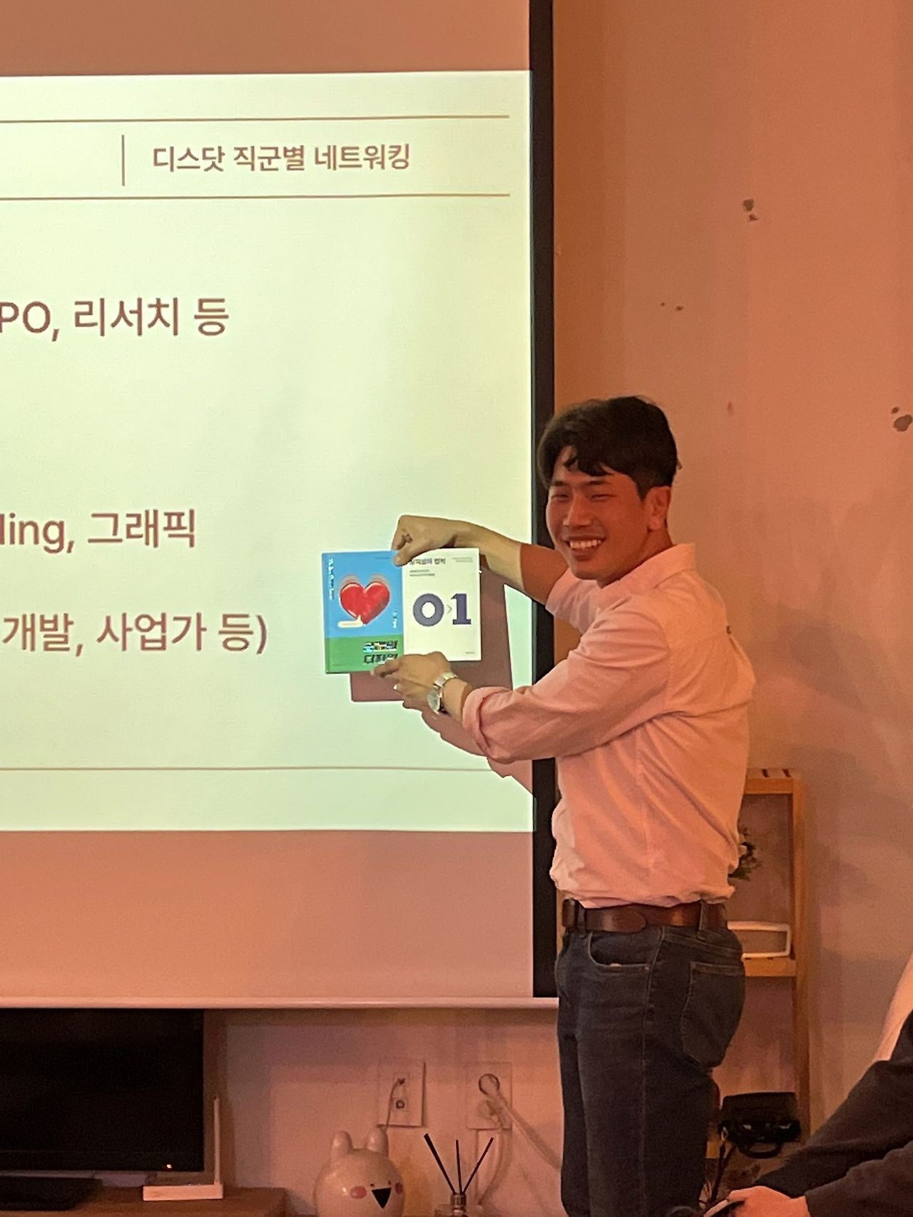 디스닷에 참여하신 디자이너분이 오늘 생일이셨어요! 즉석에서 노래를 틀어주시는 스위트한 사진의 주인공은 바로바로! 얼굴 대표 겸 커뮤니티 공동 리더이신 프레드님입니다!