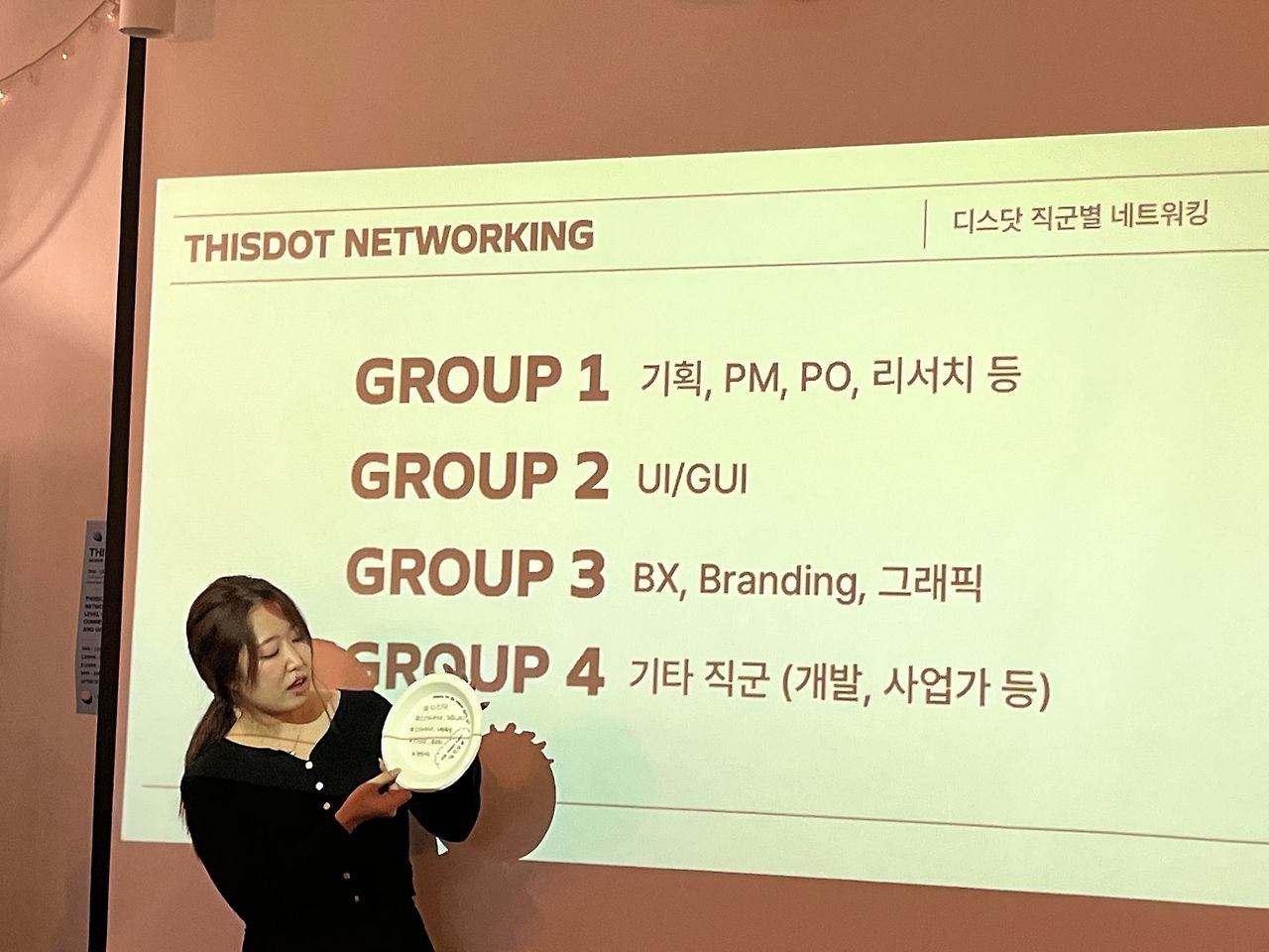 네트워킹 파티에서는 각 직군별로 모여서 아이데이션 했던 카드를 들고 함께 커뮤니티 하는 시간을 가졌습니다~!