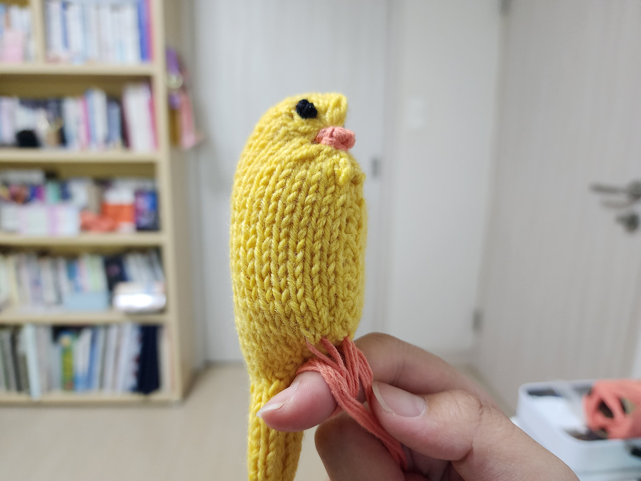오늘은 초장에 이실직고하겠다. 작품이 망했다. 그냥 망한 것도 아니고 대차게 망했다. 다른 인형도 그렇듯이 뜨개 인형의 가장 큰 부분을 차지하는 건 이목구비인데, 부리와 눈을 잘못 단 건지 아주 심술궂게 생긴 (혹은 그냥 웃긴) 카나리아가 완성됐다. 새로 뜬다고 해서 눈과 부리를 정확히 달 자신은 없기에 그냥 이런 날도 있다, 는 걸 가감 없이 말해본다. 작품이 망한 건 망한 거고, 오늘의 에세이는 진행되니 즐겁게 읽어주시라.