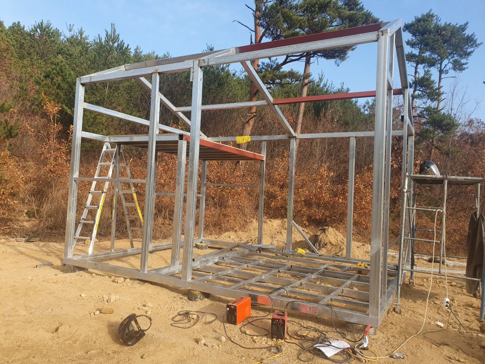 1) 틀이 들어갈 너비를 계산하여 각관을 용접하고 골조를 세운다 :여기까진 무난하게 OK !