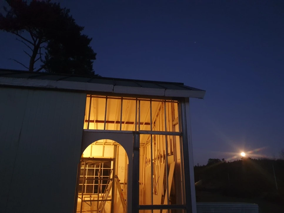 특히 문틀 만들기는 어려웠다... 하루종일 실패하면 끝! 이라는 팽팽한 긴장감 속에 한 번도 해보지 않은 , 누구의 어드바이스도 없는 일을 하는 건 정말 힘든 일이었다. 그러나 우리는 또 무언가 하나를 함께 넘었다.