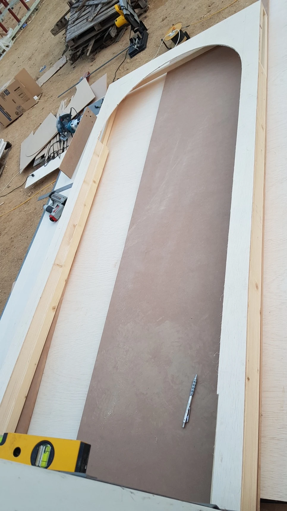 이 문틀 만들기의 관건은" 아치를 어떻게 구현할거야?"라는 거였다. 지금부터는 기존의 상식과 정보가 필요없는 영역으로 들어간다. 네이버 지식인에 몸과 두뇌를 맡기고 살아온 얄팍한 인생에서, 지식인이 대답해주지 못하는 영역이란 없을 줄 알았건만... 태양신도 모르는 아치형 문틀 만들기를 본능으로 도전한드아 !!!