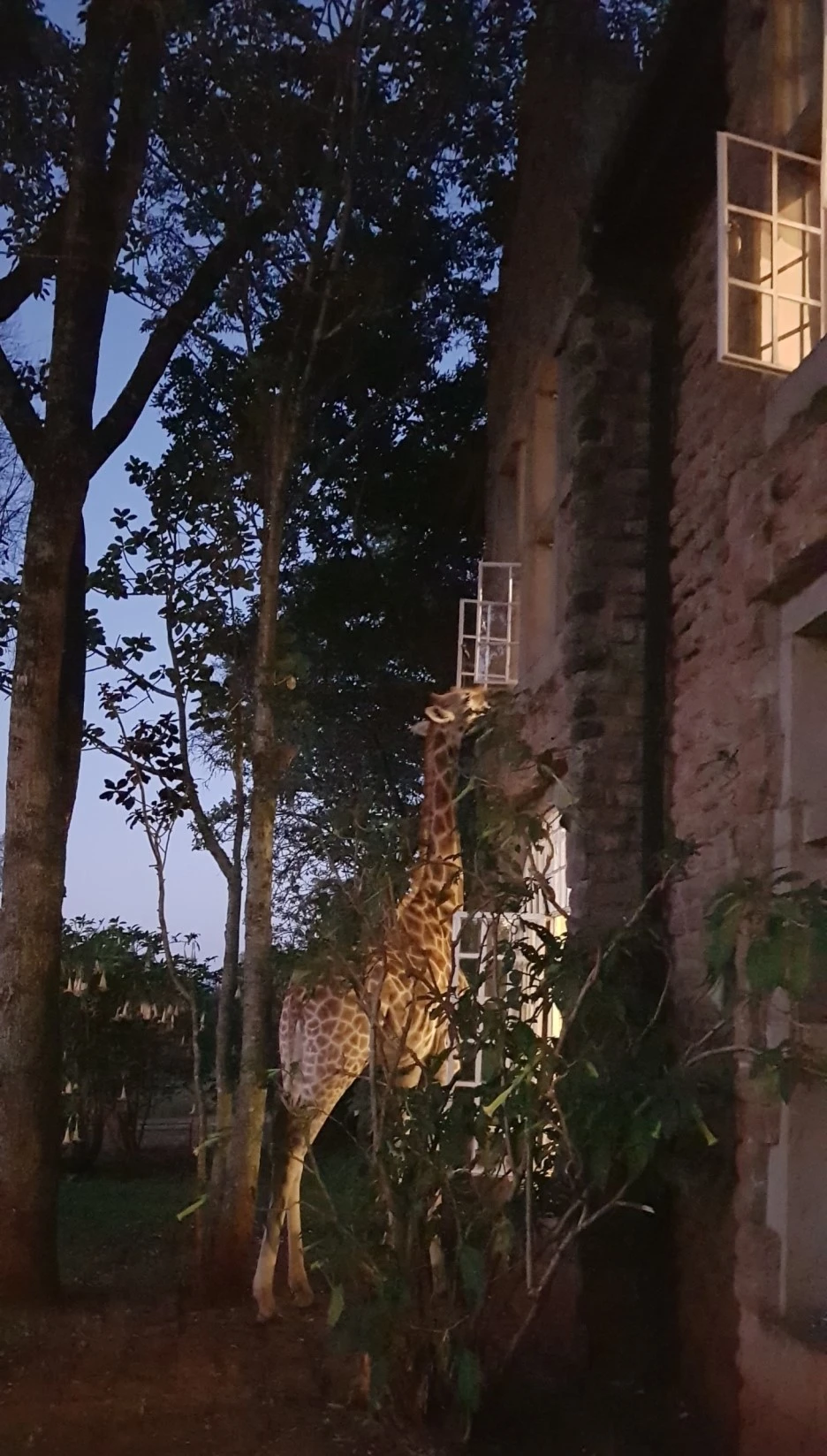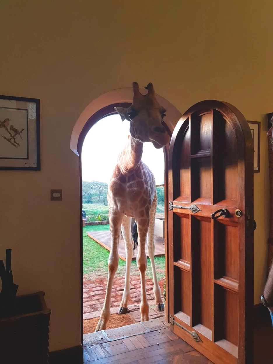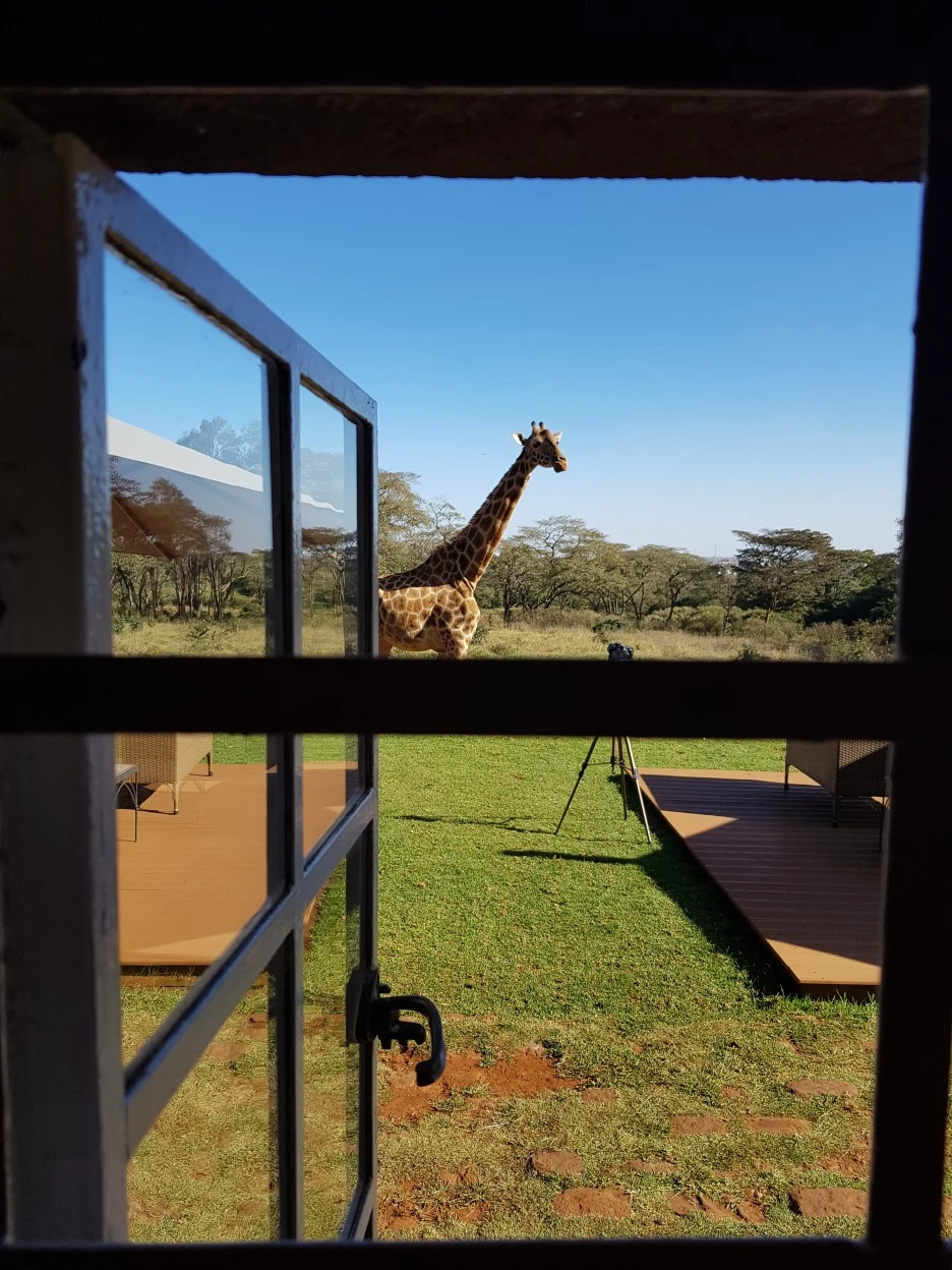 기린호텔은 140 에이커의 땅에 하루에 최대 29명의 투숙객을 받을 수 있다. 그래서인지 숙소에 도착하여 자동차 시동음이 꺼지면, 가벼운 새소리와 품바(아프리카 멧돼지, Warthog)들이 땅을 헤집고 구르는 소리 같은 것들 외에 다른 소음이 거의 없이 고요하다. 체크인은 12시부터 가능한데, 나이로비는 해발 5889피트에 위치해서 적도에 가깝지만 낮에도 무덥지 않다. 따스한 빛이 기린호텔의 베이지빛 벽돌과 건물 안으로 내내 고요하게 들어온다. 기린 호텔의 첫인상은 다정하고 포근했다. 이곳에 들어서면서부터는 아무것도 서두를 것이 없고, 모든 것은 평화롭고 그저 행복하다. 이상한 나라의 앨리스에서 공간을 이동하듯이 게이트가 열리면서부터는 공기마저 다른 듯. 시간을 잊은 듯. 모든 게 새롭다.