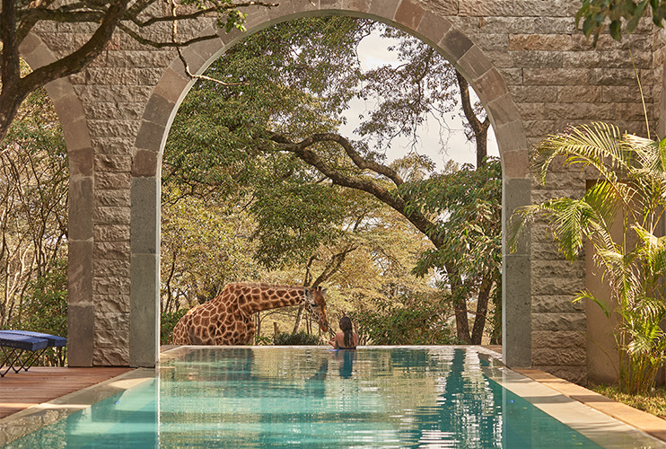 정원에서는 기린뿐 아니라 품바, 고양이, 다양한 새들이 자유롭게 움직이고, 호텔 안에서는 바람이 나뭇잎을 스치는 소리와 기린의 걸음 소리만 들립니다. 이런 고요함이 바로 하이엔드 여행의 완성이죠.