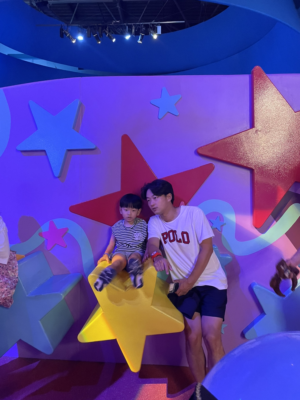 에너지를 조금 충전하고 실내 위주로 돌아다니기로 했다. 생각보다 실내 테마파크가 크고 다양해서 다행이었다. 실내에서 놀다 보니 이동하는 시간에 야외를 걸으면 나조차도 견디기 힘든 더위가 느껴졌다. 실내 테마파크에서 열심히 뛰어놀다가 잠이 든 우리 아들. 이게 과연 맞나..? 하는 생각이 들었다. 만 4세 정안에게 이 유니버셜 스튜디오는 너무 컸던 것일까.