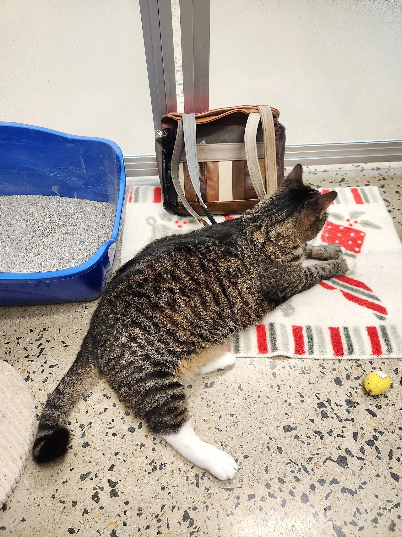 스톨(stall)에 들어가서 안쪽에서 문을 잠근 후 작은 의자에 앉아서 책을 꺼냈다. 이런 1일 봉사에 할당(?)되는 고양이들은 주의할 점이 거의 없는 유순한 고양이들이다. 내가 그 날 만난 아이는 Roo였다. 루는 엄청나게 큰 고양이였다. 여태껏 본 고양이 중에 단연코 가장 큰 녀석이었다. 살이 많이 찐 뚱냥이는 더러 봤지만 이렇게 기골이 장대한 녀석은 처음 봤다.