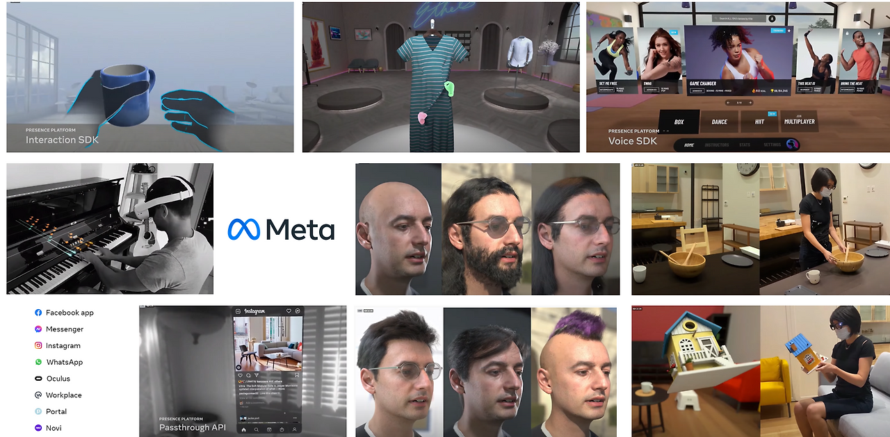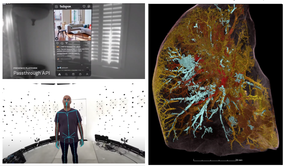 이에 더해서, 메타 리브랜딩 발표 시, 혼합현실(Mixture Reality, MR) 관련 기술과 바이올로지 이미징 테크놀로지(Biology Imaging Technology) 성과에 관해서도 콘퍼런스 혹은 그 이후 커뮤니케이션 활동을 통해 소개하고 있습니다. 메타의 프레즌스 플랫폼(Presence Platform)은 MR 서비스를 구현하는 툴들을 지원하고 있는데, 이 중 Interaction SDK, Voice SDK, Tracked Keyboard SDK, Passthrought API 등 개발 현황도 소개되었으며, 코로나에 반응하는 폐혈관의 변화를 밝게 찍어내는 바이올로지 이미징 기술 성과도 소개하면서 진보된 테크 기업으로서의 이미지를 강화해나가고 있습니다.