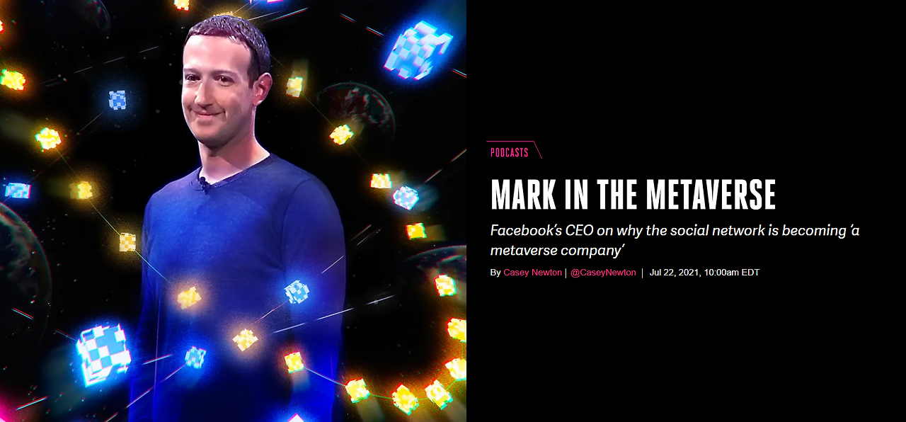■ 2021년 7월 I 페이스북 CEO, 페이스북이 메타버스 기업이 될 것이라고 미디어 인터뷰 실시