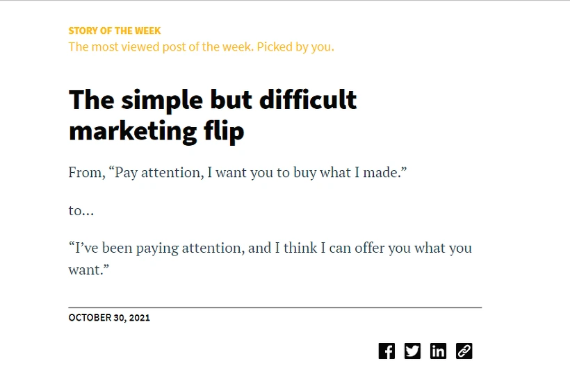 "저를 주목해주세요. 저는 여러분께 제가 만든 이것을 팔고 싶어요."라고 말하기보다는,