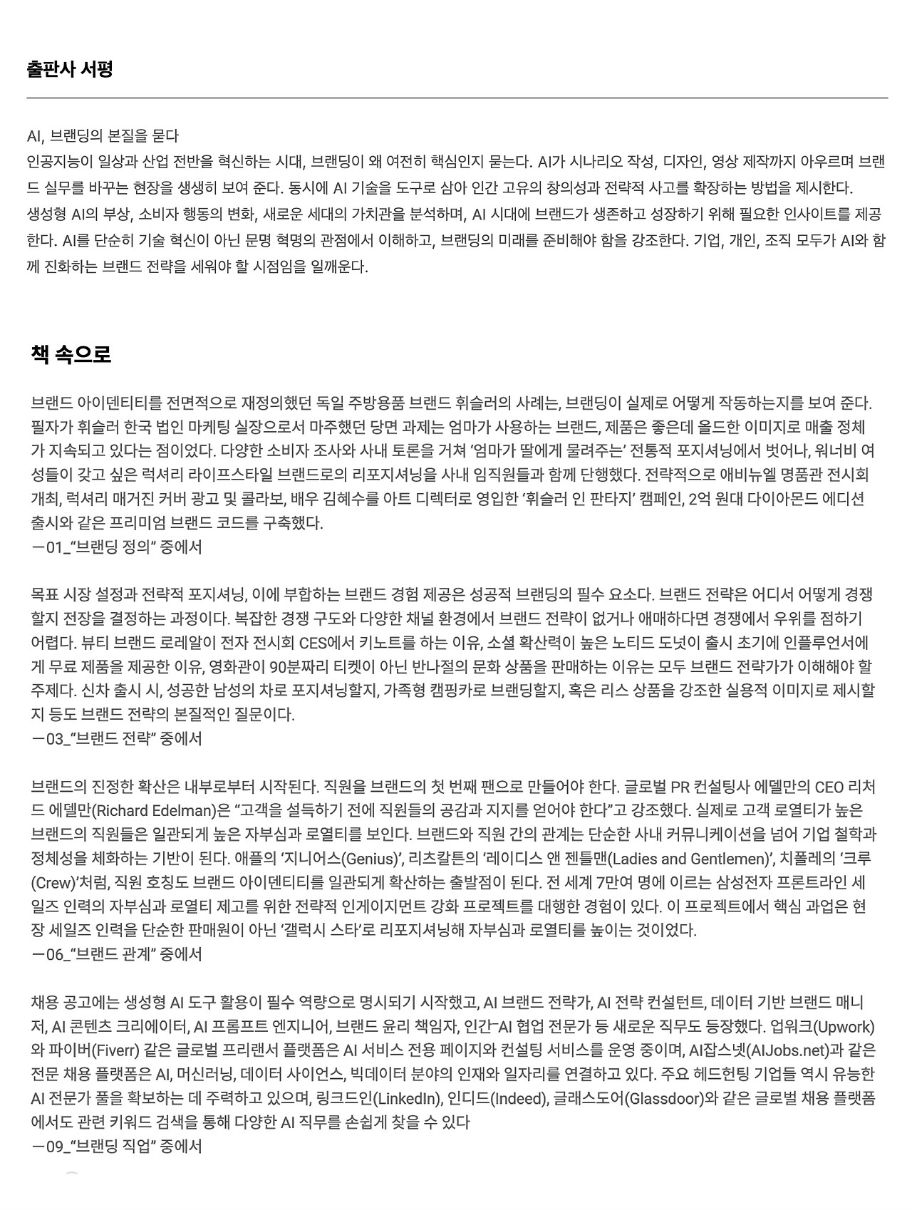 이번에 『AI와 브랜딩이라는 새로운 책을 출간하게 되었습니다. 글로벌 기업의 한국 시장 브랜드 전략을 수립하고, 한국 기업과 기관의 글로벌/로컬 브랜딩을 담당하며 쌓아온 경험과 인사이트를 바탕으로, 급변하는 AI 시대에 브랜드 전문가들이 어떻게 대응해야 하는지에 초점을 맞췄습니다.