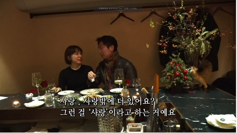 박민혁 : 정말 내가 즐거워서 요리를 해주고 내가 한 요리를 당신이 맛있게 먹어줘 그런 모습을 보는 게 행복하잖아. 그거를'희생'이라고 부를 수는 없다는 거지 내 말은. 오히려 나한테 그런 요리를 할 수 있게 해 줘서 고맙다. 그게 차라리 더 맞는 거지 '희생'이라는 것보다는.