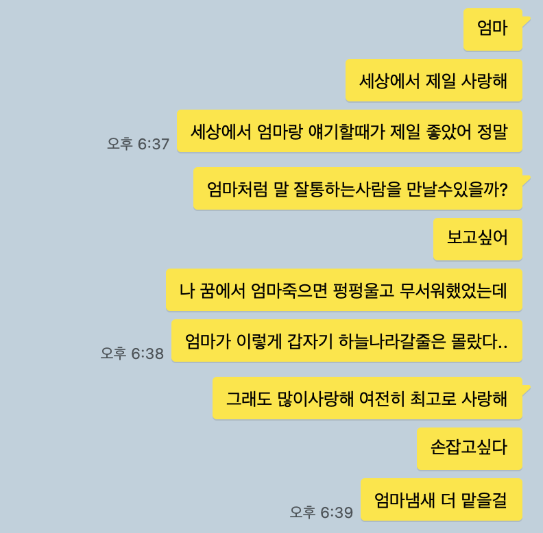 별별 생각이 다 들었지만 엄마랑 아직 이야기할 수 있을 줄 알았던 그 시간.