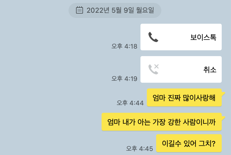 엄마가 보지 못할 것을 알면서 엄마에게 카톡을 보냈다.