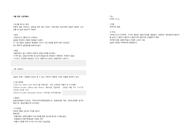 그리고 남에게 보여주기용이 아닌 '나를 위한 사업계획서'를 작성했다. 다시 보니 정돈되지 않은 만큼 허점 투성인 데다가 시대의 흐름도 잘 봤던 것 같지는 않지만 그 당시에는 그런 문서들이 내가 일을 해 나가는 데 있어서 확신을 주고 그림을 그리도록 도와주었었다.