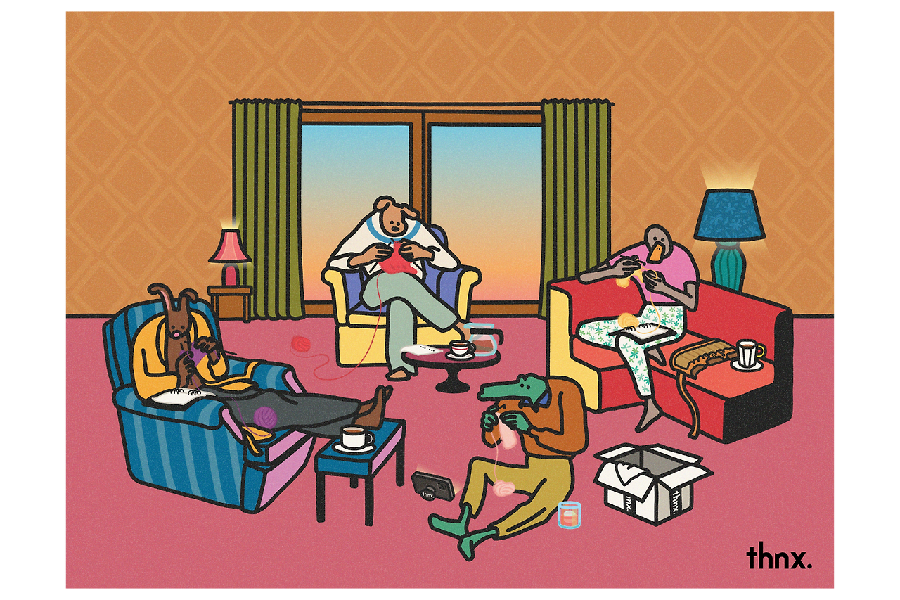 취미로 하루를 푸는 뜨개친구들의 이야기가 드디어 눈앞에 펼쳐지자 땡스thnx 는 더욱 속도를 낼 수 있었습니다. 우리 주변 어딘가에 있을법한 4인(?)의 니터 땡씨, 아거, 돌프, 오호리 친구들을 데리고 제품, 웹 등을 준비하기 시작했죠.
