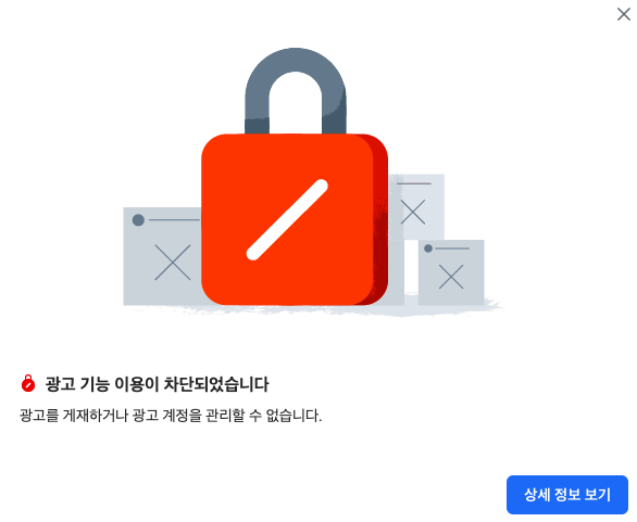 광고 기능 액세스가 영구적으로 제한되었습니다. 이는 최종 결정입니다.
