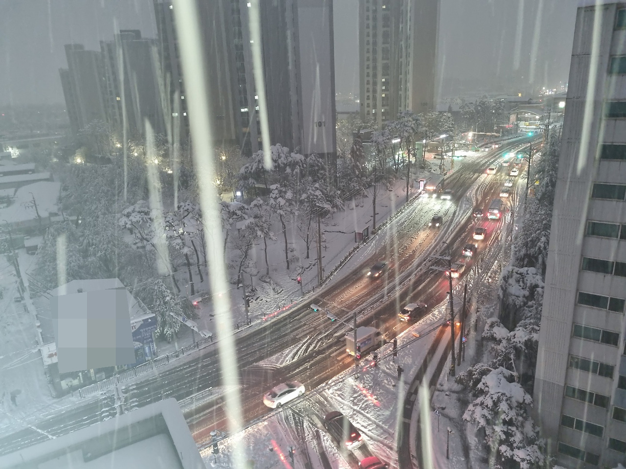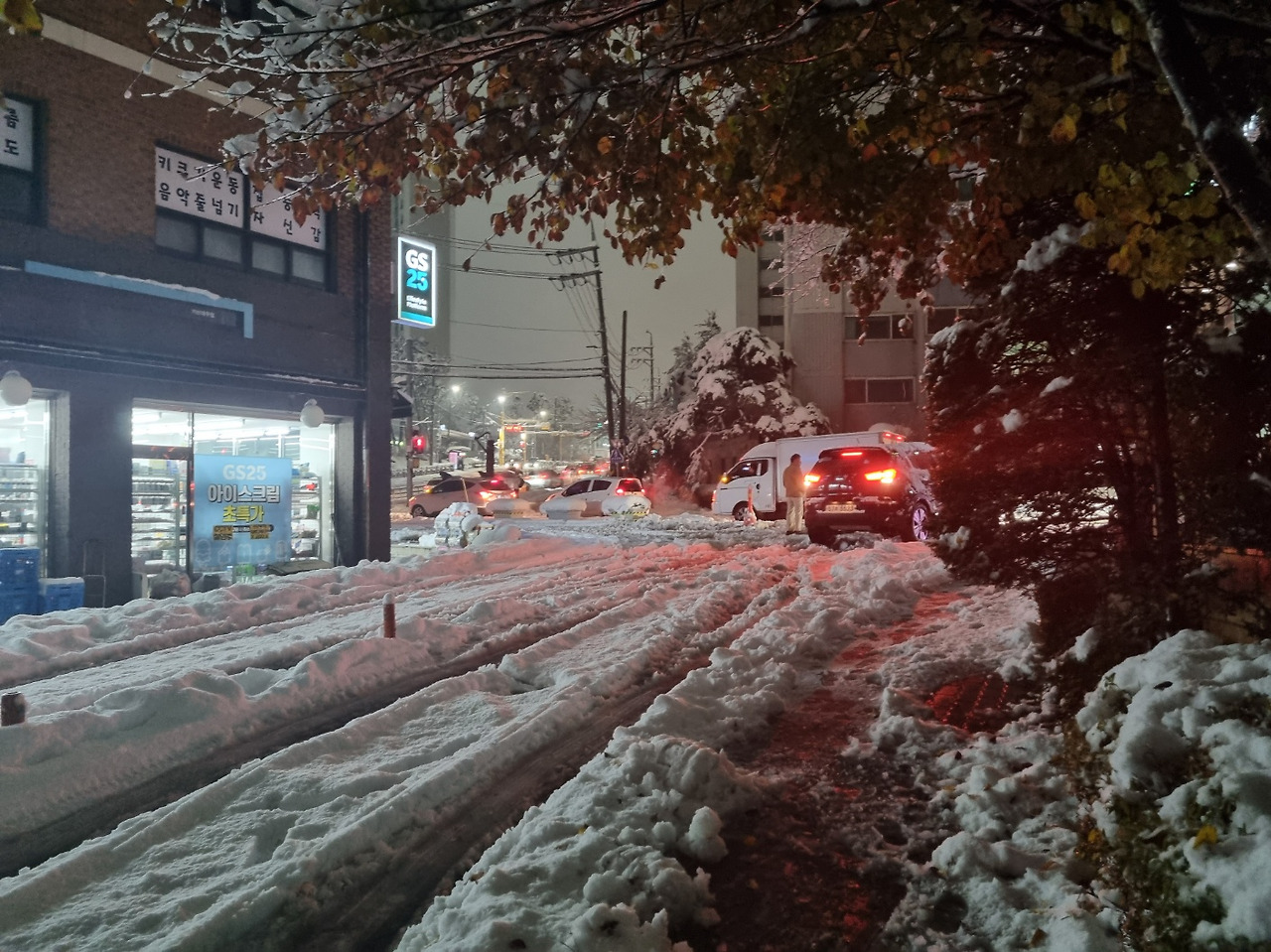 11월, 초겨울 첫눈 치고는 내려도 너무 내리기 시작하는 것이다. 눈 내리는 날씨에 운전은 많이 해보았지만 이렇게 내리는 눈은 흔치 않은 경우다. 차량들이 밀리며 미끄러지기 시작한다. 순간 유턴하는 구간이 나타났다. 잽싸게 미끄러지며 유턴을 시도했고 다행히 성공해서 사고 없이 집에 들어왔다. 집에 들어와 창밖을 보니 정말 내려도 너무 심하게 내리고 있었다. 이상기후라고는 하지만 "얼마나 더 내리겠어" 생각하며 내일 아침 일찍이 창을 맡기고 와서 일과를 시작하기로 마음먹었다.