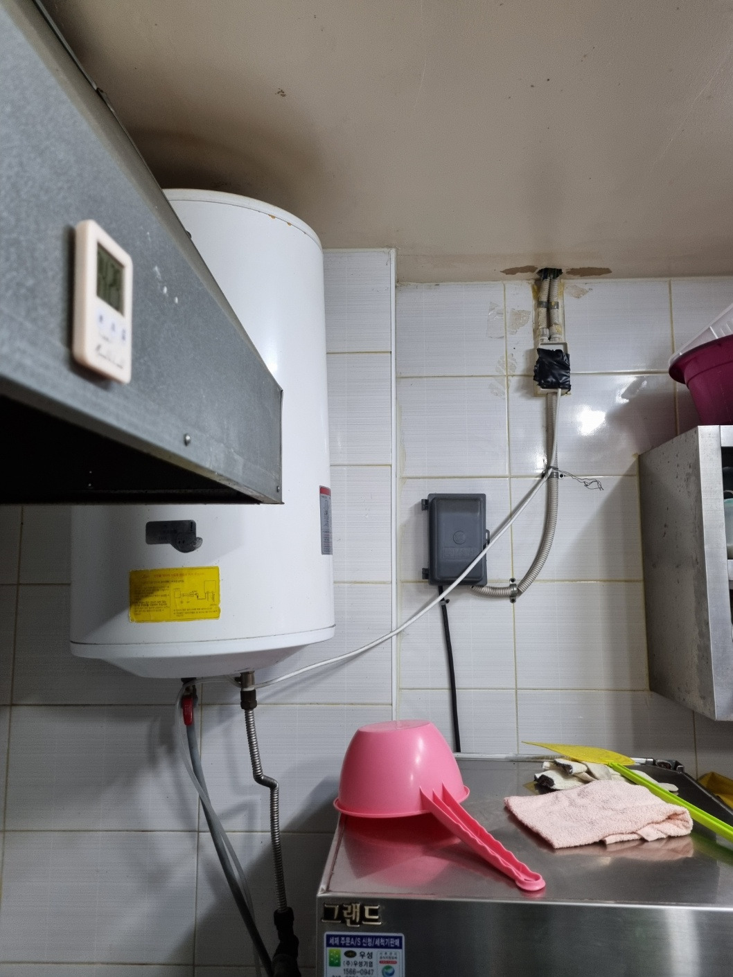 결국 이번일은 벽에 못하나 박은 것이 화근이 되었던 것이다. 못 좀 박겠다고 옆집에 미리 말을 했으면 어땠을까! 그래도 소리가 매우 컸기에 온수통은 위태위태 넘어가게 보였을까! 여러 가지 의문은 들었지만 잘 해결되어서 다행이라는 생각을 하게 된다. 온수통을 새로 달지 않아서 다행이고 돈 들어가는 일 없어서 다행이고 서로 감정 상하지 않게 해결되어서 다행인 것이다. 무엇보다 연세 많으신 사장님 마음이 편안하게 풀리셔서 다행이란 생각이 들었다. 온수통이 조금이라도 이상해 보이면 연락하시라고 연락처를 저장해 드렸는데 한 달이 지난 지금도 연락이 없으신걸 보니 튼튼하게 잘 걸려 있는 것으로 생각되었다.