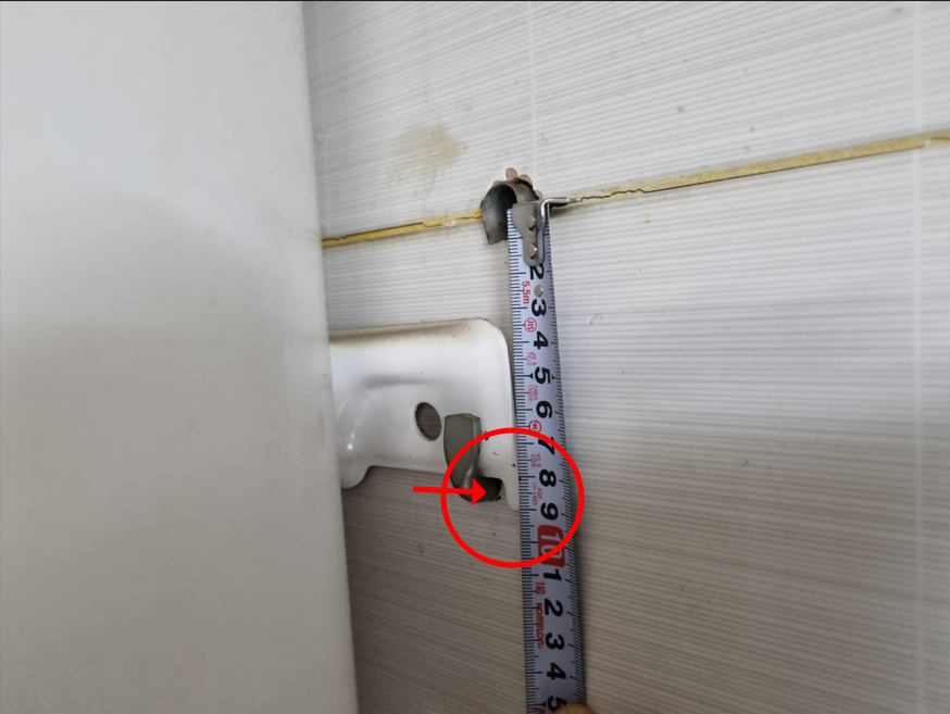 먼저 온수기를 지탱하고 있는 좌우 앙카못의 상태를 살펴보았다. 어느 것 하나 움직임 없이 콘크리트기둥에 튼튼하게 박혀있었다. 이번엔 좌우에 앙카못의 높이를 측정해 보았다. 그리곤 있는 그대로 사진으로 남겼다. 기준점은 타일의 줄눈으로 삼았다. 타일은 레이저레벨기의 수평과 수직광선을 중심으로 작업하게 된다. 레이저레벨기는 지구중심자기장의 수직과 수평을 표시하므로 모든 작업의 기준점이 된다. 사진을 살펴보니 좌측앙카가 1CM(10mm) 낮게 걸려있었다. 사장님과 젊은 아드님과 사진을 보면서 의견을 나누게 되었다. 온수통은 처음부터 좌측이 1CM 낮게 설치되어 있었던 것이다.