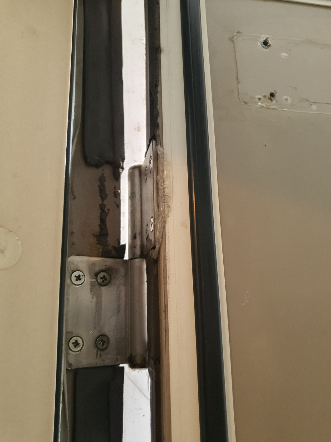 이번엔 예정되어 있던 현관 롤방충망을 설치해 드렸다. 현관방충망도 이사하며 가져오셨다. 현관문과 방충망의 크기를 확인하고 현관문을 닫고 열면서 간섭이 없도록 설치를 하려는데, 현관문이 하단 문틀에 걸려 잘 닫히지를 않는다. 걸리는 부분에서 팔에 힘을 주고 힘껏 당겨야만 닫혔다. 어머님과 같이 사신다고 하시는데 연세 있으신 어머님은 이 문을 잘 닫을 수가 있으실까? 의문이 들었다. 나는 이 부분을 의뢰인께 말씀드렸더니 어머님도 매우 힘들어하신다고 하신다. 이 문을 계속해서 힘껏 잡아당겼다가는 손목이 나갈 수도 있겠다는 생각이 들었다. 문제는 비용이다. 임대아파트들은 어지간해서는 수리를 해달라고 하기 어렵고 거주인도 넉넉지 않은 형편에 비용을 들여 고치기 힘들어한다. 나는 현관문을 손봐드려도 되겠냐고 물었고 의뢰인도 좋다고 하신다.