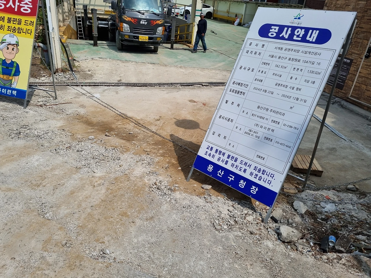 구청에 전화를 해도 방법이 없었다. 주차를 해 놓으면 주차딱지를 떼이거나 혹은 견인까지 당한다면 더 큰일이 생기는 것이다. 작업보다 주차가 더 힘들다니! 그냥 집에 가고 싶었다. 마침 공사 중이다 퇴근한 공영주차장 앞에 주차를 했다.