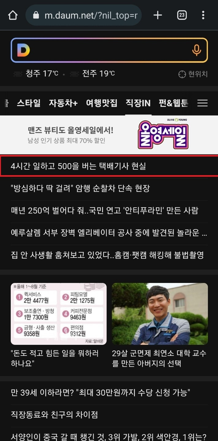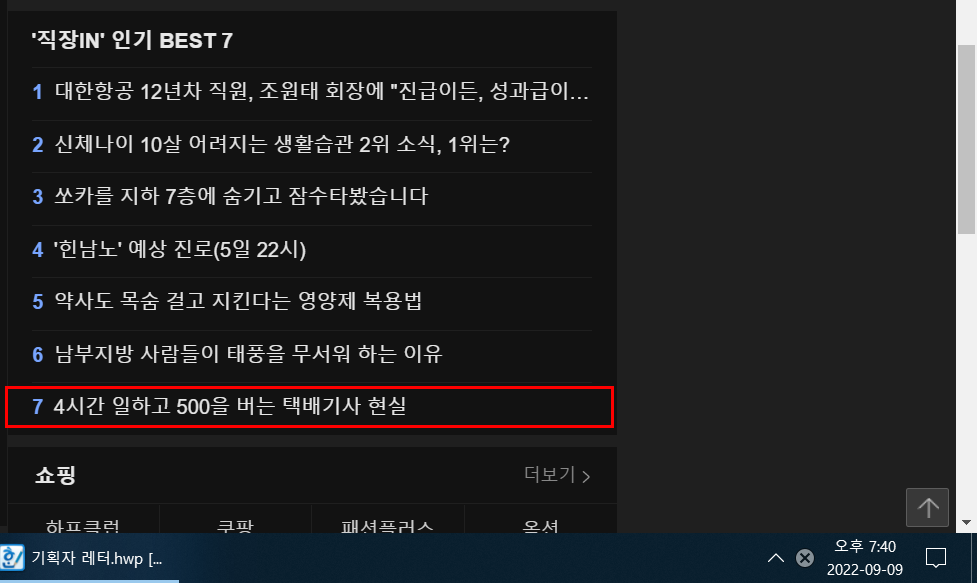 다음 메인 노출에 올라갔던 글 모음입니다~~!! 9월 9일 '직장IN'인기 BEST 7 입니다