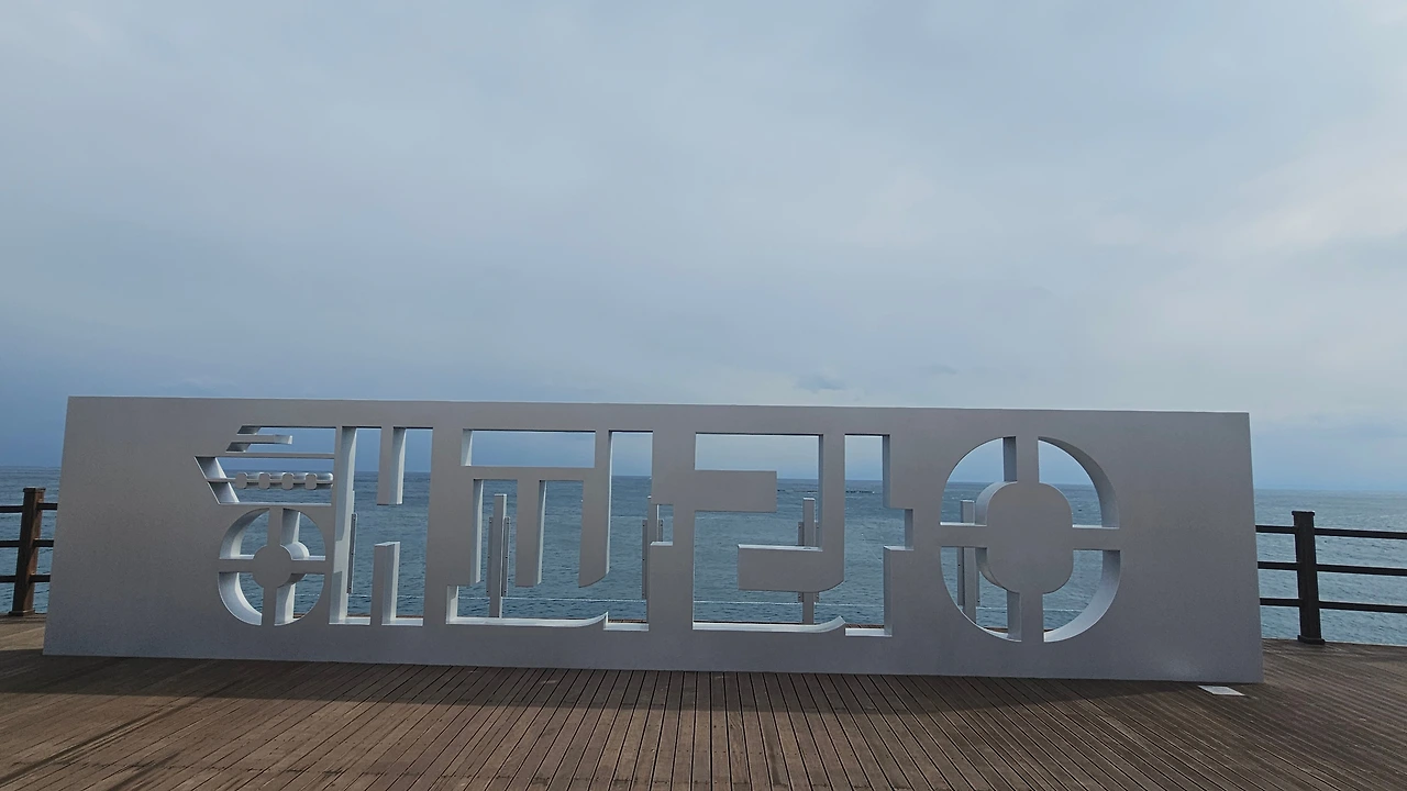이때까지도 비바람이 몰아쳤다. 날도 추우니 더 든든하게 대게빵부터 먹자! 그리고 대게빵을 하나씩 들고 해파랑 공원 투어에 나섰다. 사진이랑 많이 다르다. 역시 맑은 하늘이 있어야 사진이 완성되는데 날씨가 흐리다 보니 생각했던 것과는 많이 달랐다. 그럼에도 불구하고 사진도 열심히 찍고 바다도 보았다.