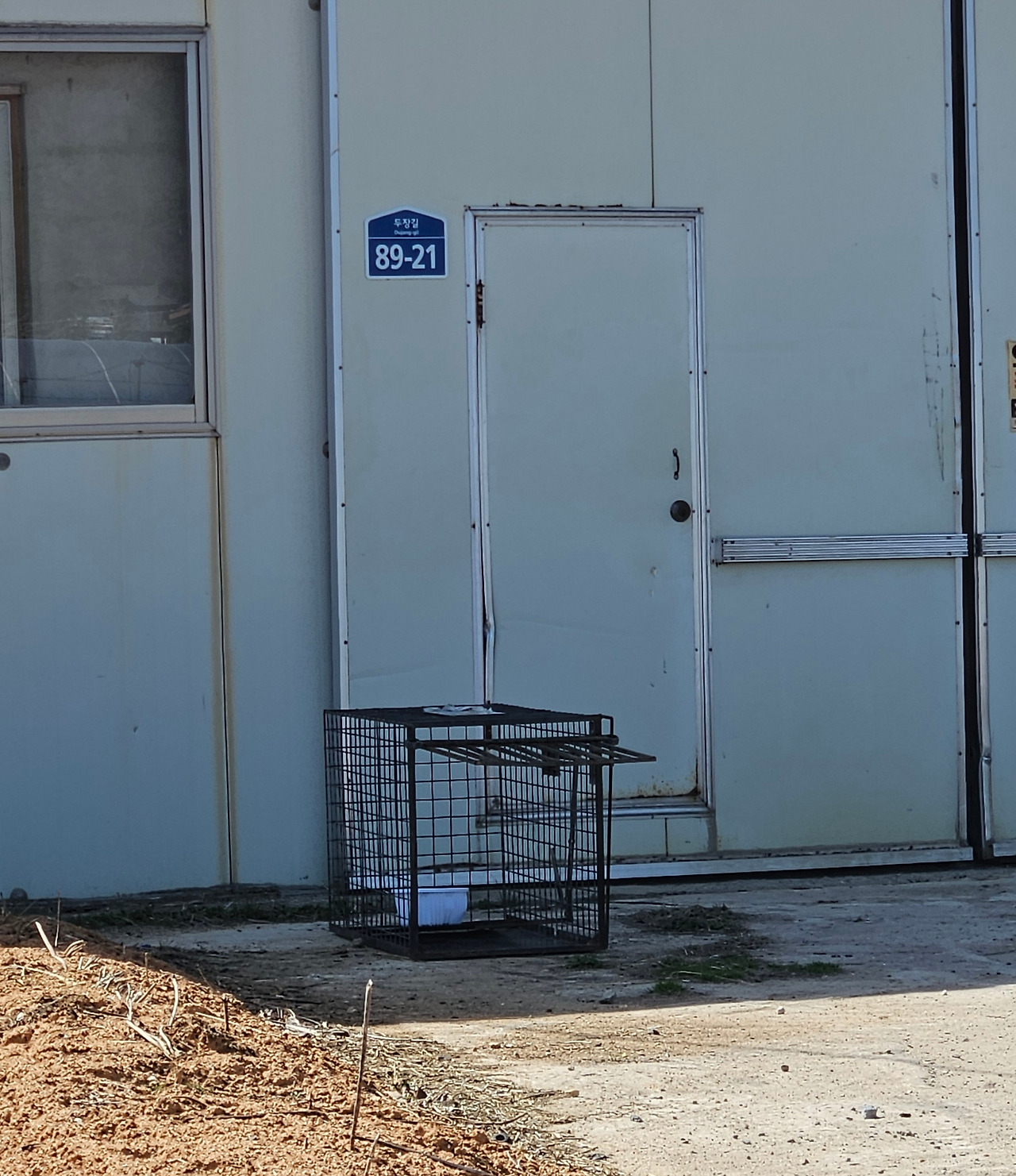 모두 모른다는 답변뿐이었다. 그래서 119에 신고했는데, "유인해서 잡기는 어렵다. 마취총을 쏴서 잡아야 한다. 개에 목줄이 있어 주인이 있을지 모르니 누군가 동의하지 않으면 마취총을 쏠 수도 없다"라며 돌아갔다. 유기견 보호소에서는 포획망을 갖다 줄 테니 직접 관리해서 잡으라고 했다. 포획망이 고철이라 그냥 가져가기도 한단다. 주말 사이에 포획망에 먹이를 넣어 두었지만 개는 잡히지 않았다.