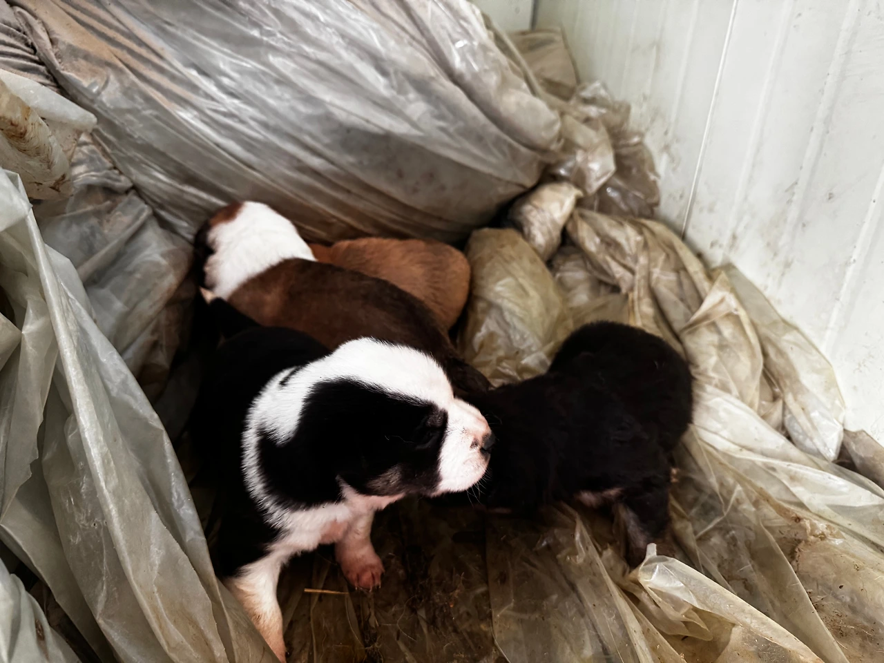 개가 잡혀가고 이틀이 지난 후, 동네 아이가 학교를 가는데 강아지 소리가 들린다며 엄마에게 연락해 왔다. 그곳에 가보니 강아지 4마리가 낑낑대고 있었다. 어미 개가 항상 있던 곳 바로 근처 컨테이너 박스 옆의 안전한 공간이었다.