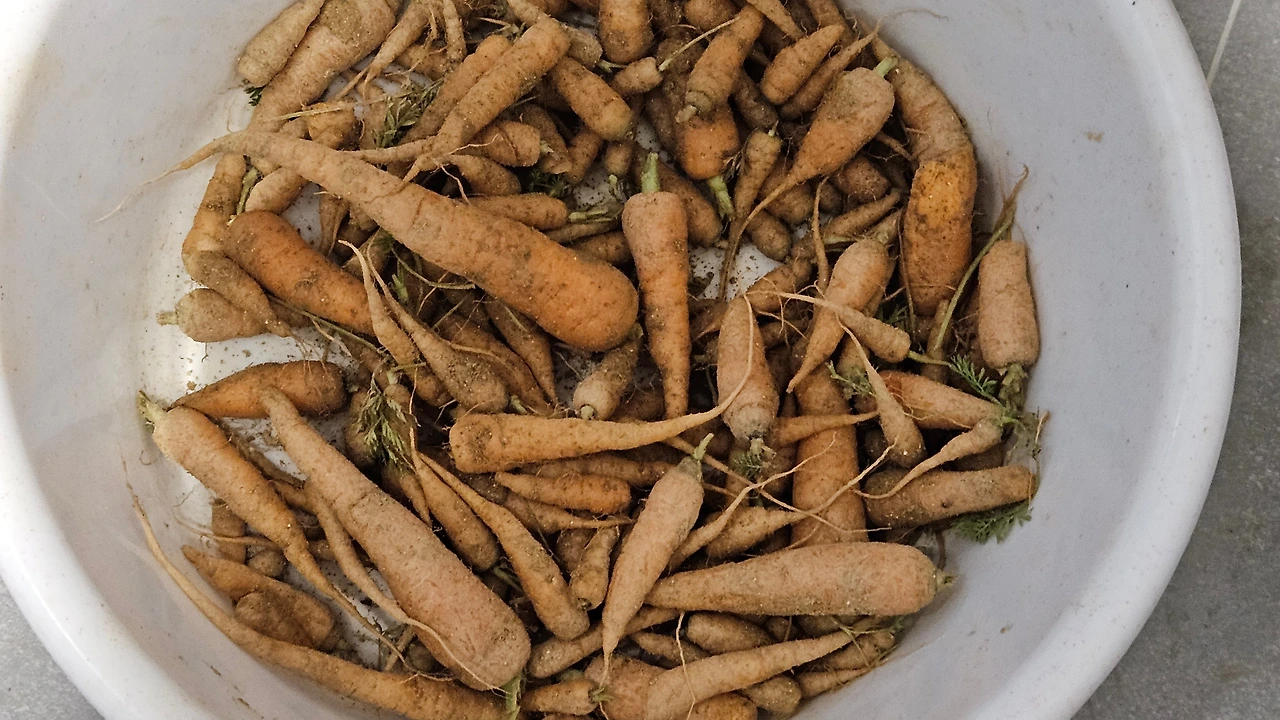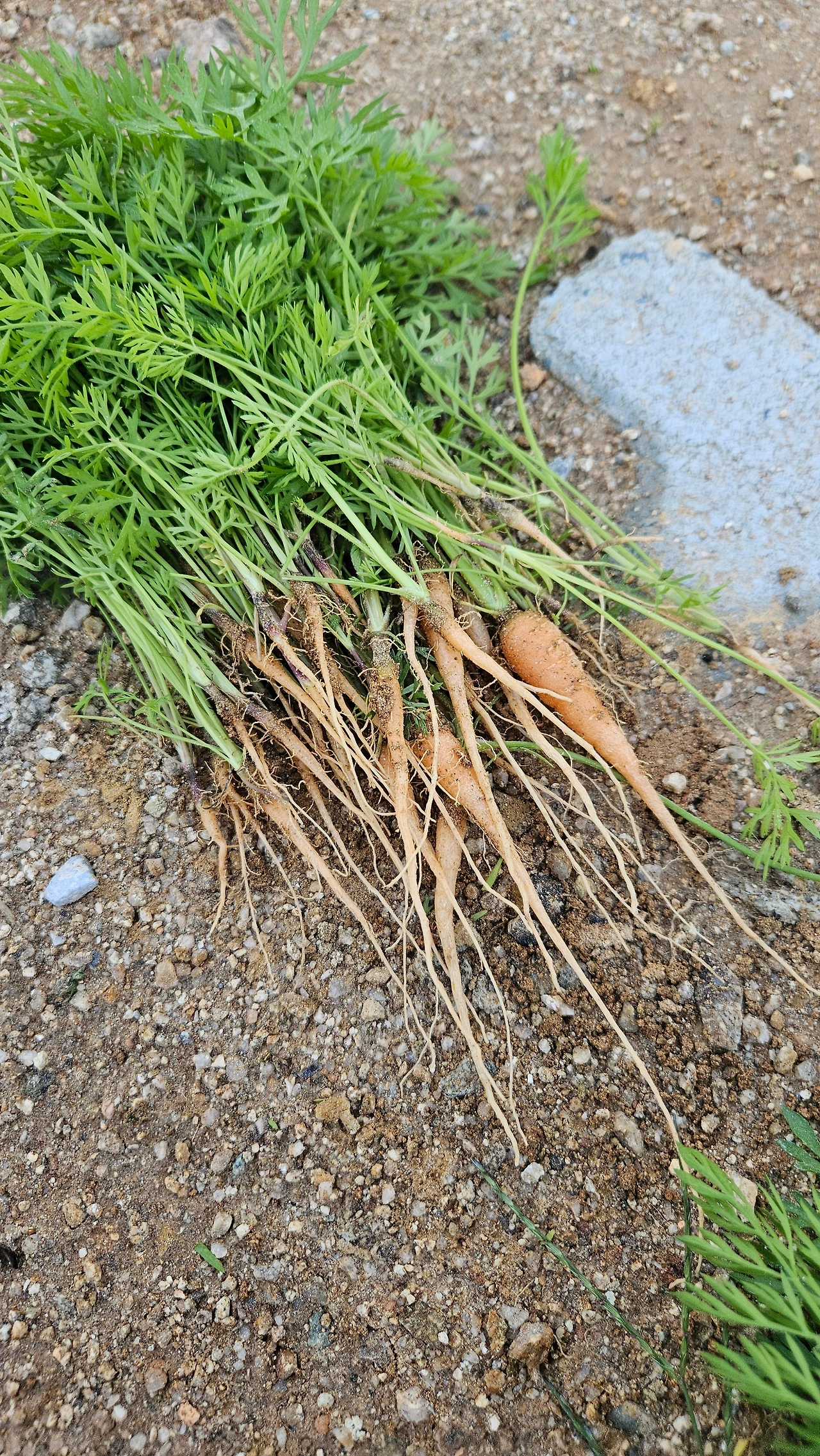 씨앗을 많이 뿌린 탓에 다 뽑지는 못하고 조금 더 두기로 했다. 그리고 마지막으로 당근을 수확했다.